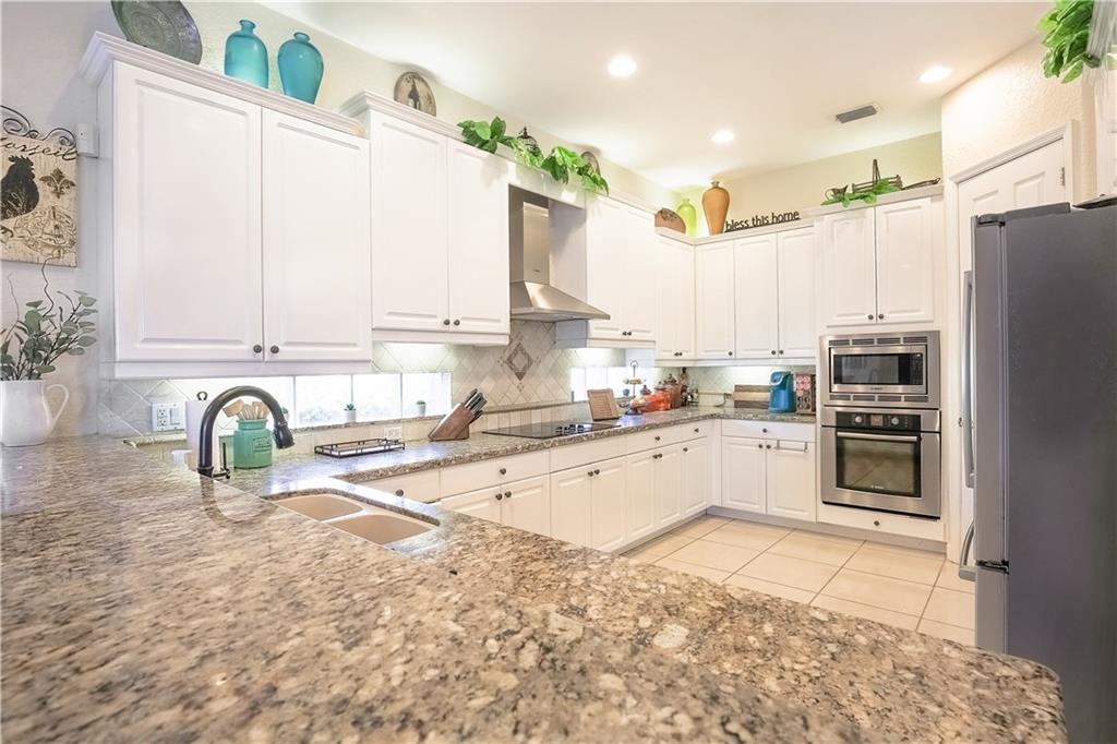 Enjoy this peaceful retreat on an oversized lot on a quiet cul-de-sac and large lake frontage. Large pool and patio all in a screened enclosure. Fenced yard and playset. Granite countertops and stainless steel. Wrought iron railing. Stunning 2 story foyer, dining room and the formal living room overlooking the lake. New wood floors living room, 2 bedrooms on the first floor. Marble in common areas. Accordion shutters.