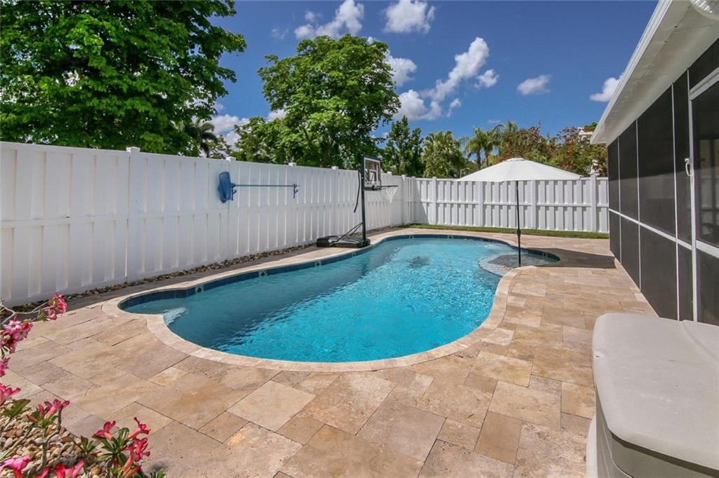 Gorgeous 3/2 pool home in Chapel Trail! Single story home with vaulted ceilings an open floor plan. Tile flooring throughout main living areas. Beautiful laminate flooring in master & secondary bedroom. Large kitchen with stainless steel appliances, tons of cabinet space with eat-in kitchen. Master & secondary rooms are split. Fenced in backyard. Salt water pool is tropical oasis with travertine patio deck! AC 2014. Water heater 2015. Panel hurricane shutters. HOA fee covers comcast cable/internet. A+ rater school system!