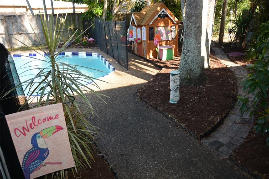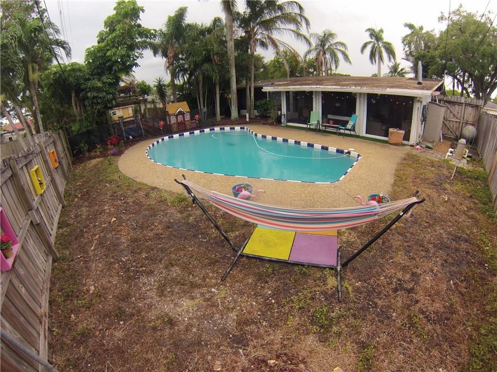 Custom built 3/2 pool home w vaulted wood ceilings, tropical style house with wide open views of pool area and landscaping. Custom maple kitchen cabinets w/ built in 7 person granite bar. Stainless steel appliances, granite counter tops & top of the line pergo! Screened Florida room with built in gas Bar-B-Que. House has accordian shutters & roof replacement coming. Add you own special touches to make this your tropical paradise with a tile bar out back w/ electric. Come on folks it's 5 o'clock somewhere!