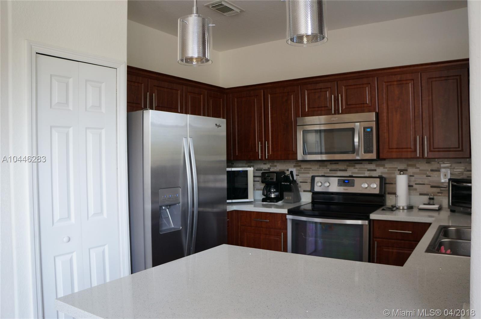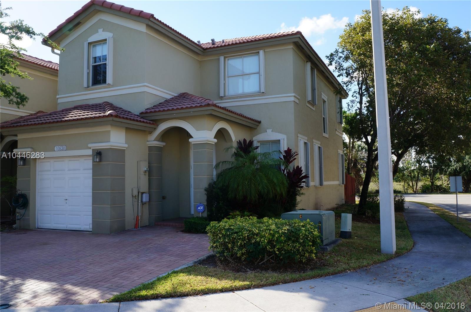 Beautiful Corner Townhouse 3 Bedrooms and 2.5 Baths. Laminated wood flooring on second floor. Granite countertop and stainless steel appliance at the kitchen. Accordion shutters. Community pool, gym, tennis, and basketball courts. Come to see it, you will love it.