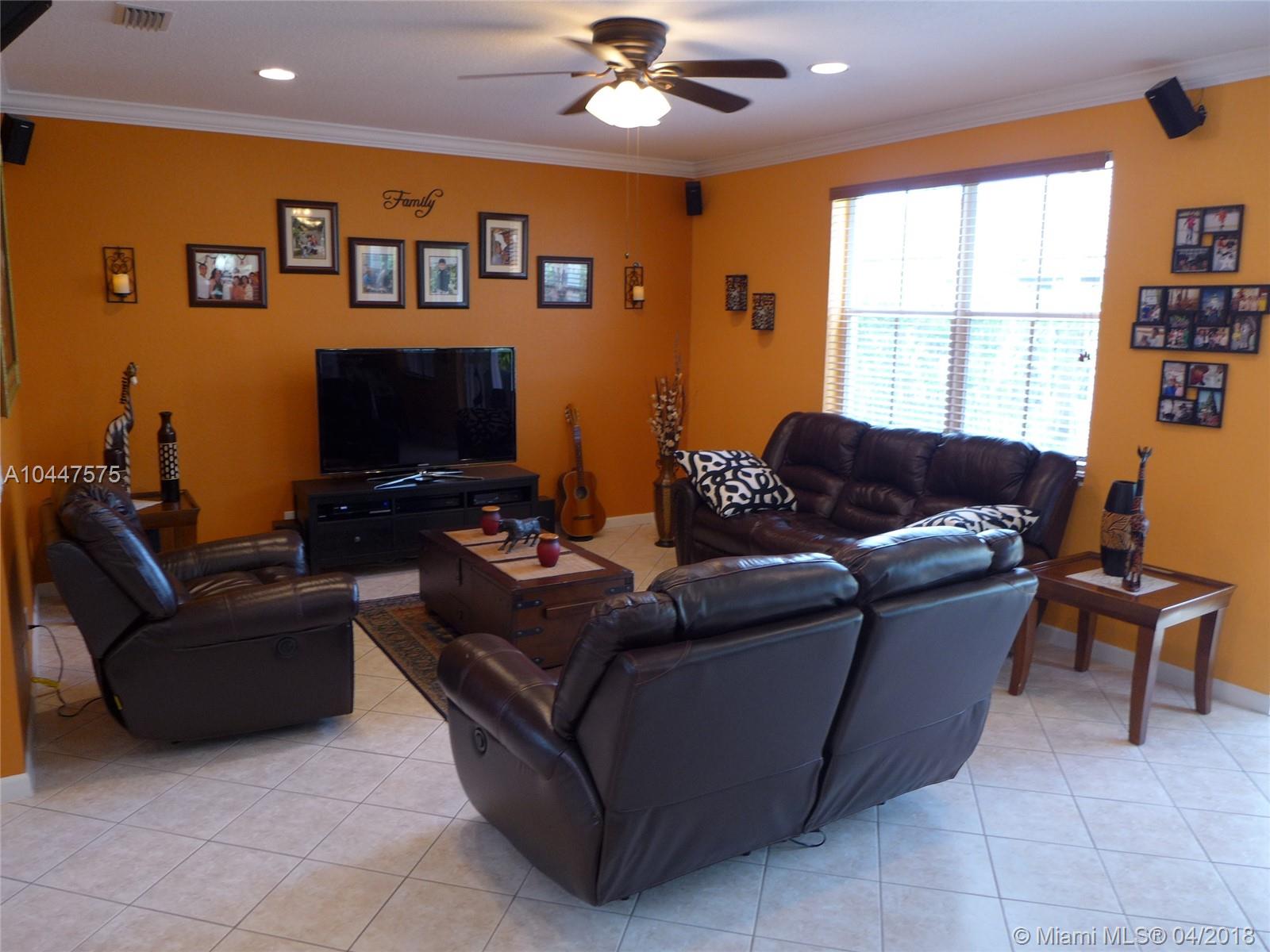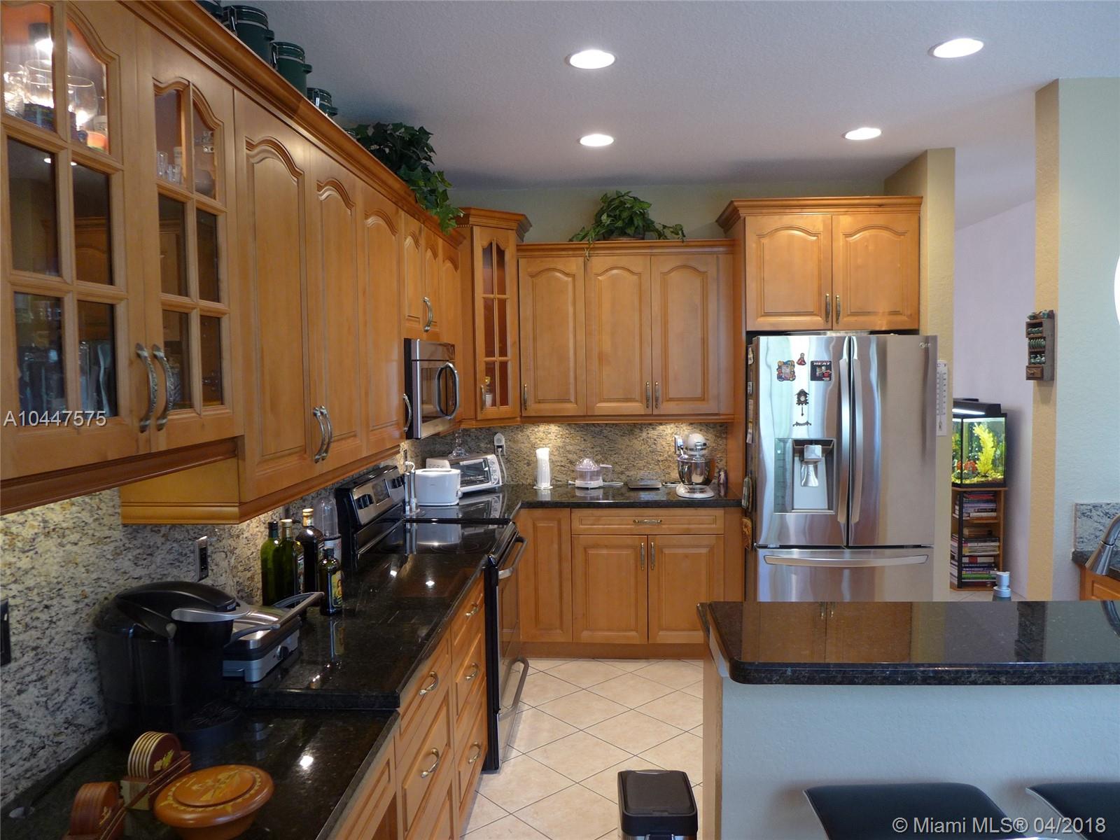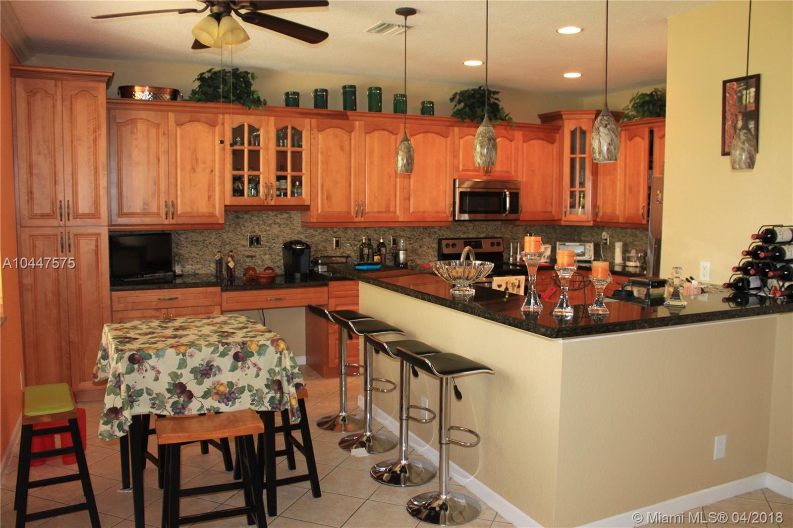 This beautiful, 4-bedroom, 2.5 bath, features a spectacular kitchen with wood cabinets, under-cabinet and pendant lighting, SS appliances, granite surface and back splash, large pantry, built-in-desk and plenty of storage. There is crown molding in the living area and tile floors in downstairs with designer, ceiling fans through out.The two-car garage has an epoxy floor and the laundry room is bright and has a large, utility tub. Covered patio overlooks the back-yard. Savanna has the best clubhouse in Weston, with multiple pools, water slide, miniature golf and cafe-restaurant. it is also located next to Weston Regional Park and the YMCA. Perfect home for a family and great schools in one of the safest cities in the country. Accordion hurricane shutters & New AC system in the home.