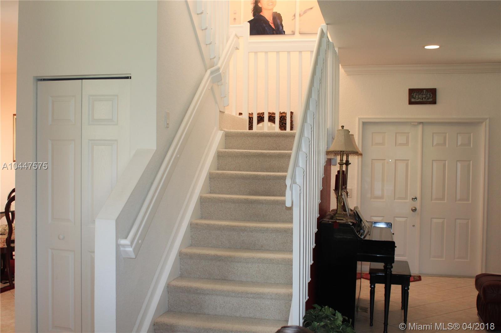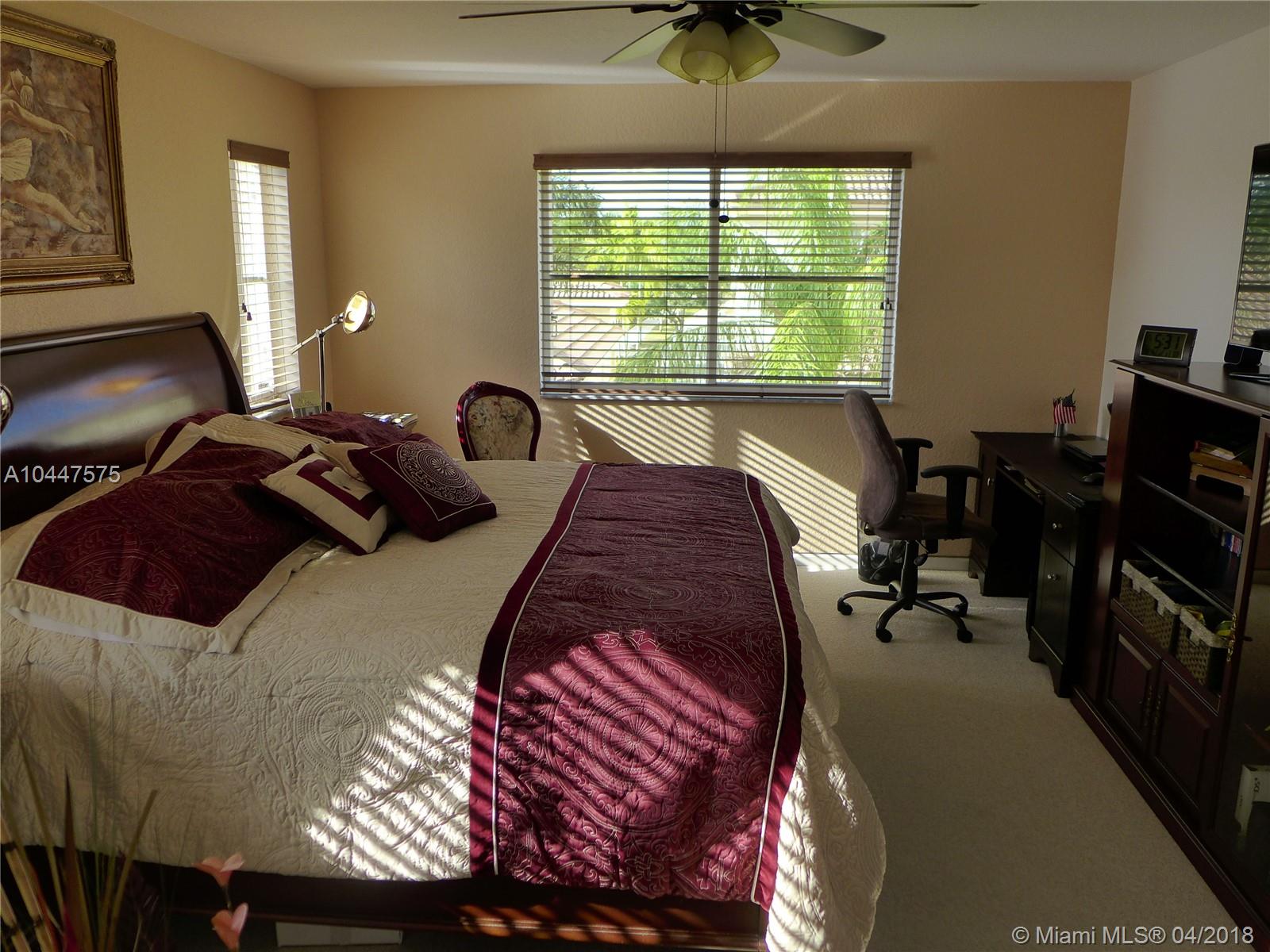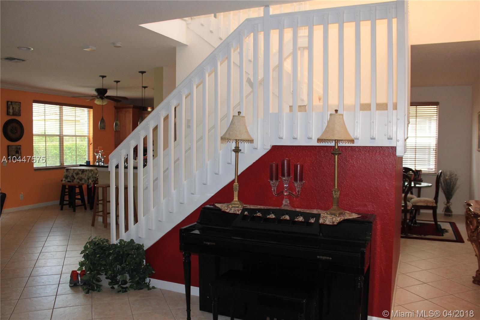 This beautiful, 4-bedroom, 2.5 bath, features a spectacular kitchen with wood cabinets, under-cabinet and pendant lighting, SS appliances, granite surface and back splash, large pantry, built-in-desk and plenty of storage. There is crown molding in the living area and tile floors in downstairs with designer, ceiling fans through out.The two-car garage has an epoxy floor and the laundry room is bright and has a large, utility tub. Covered patio overlooks the back-yard. Savanna has the best clubhouse in Weston, with multiple pools, water slide, miniature golf and cafe-restaurant. it is also located next to Weston Regional Park and the YMCA. Perfect home for a family and great schools in one of the safest cities in the country. Accordion hurricane shutters & New AC system in the home.
