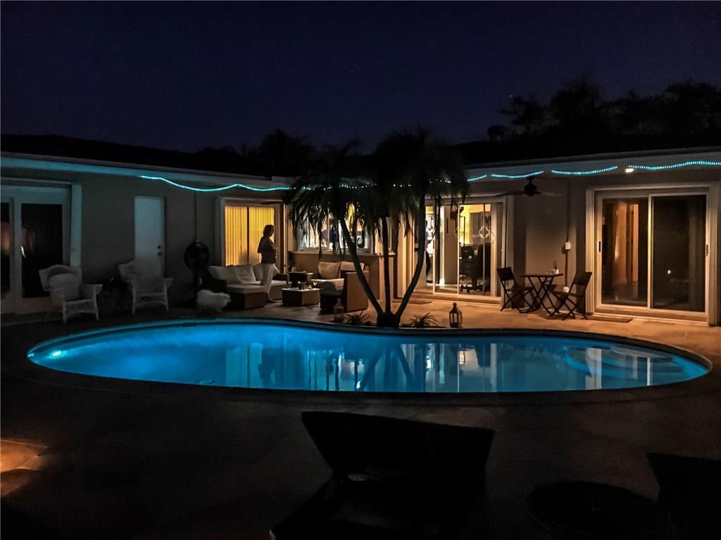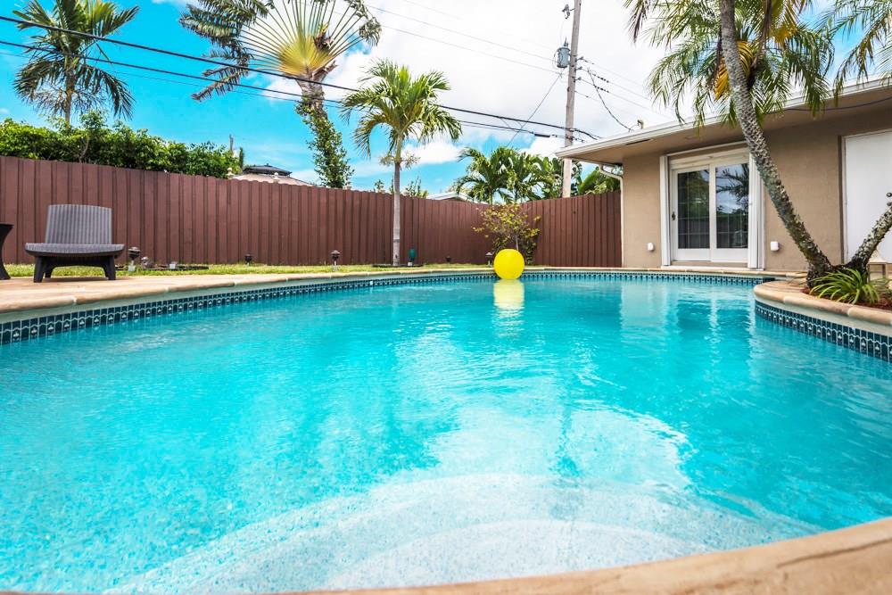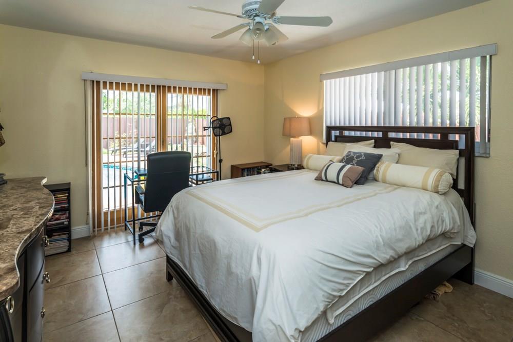 Expansive 5 bedroom 3 bath home includes mother-in-law suite or children's wing. 24' tile throughout. Elongated living room, formal dining room, family room, and updated kitchen. Stainless appliances including washer and dryer. Tankless hot water heater. Impact windows, large private pool, enormous fenced backyard, secluded guest outdoor lanai. 2-car garage on a tree lined street with circular drive and room for 5 cars.