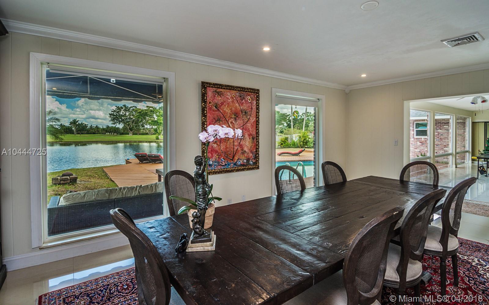 Beautiful estate home nestled in the well desired community of Jacaranda Country Club. Home sits on over 13,000 sq ft. It boasts a golf course view as well as an amazing waterfront view. Features open, split floor plan with over 3,000 sq ft under air, a brand new modern kitchen with all amenities as well as brand new impact glass windows with a view to die for in the lanai which provides open access to both inside all rooms as well as the exterior patio and deck. Exceptionally maintained and well appointed. A must see. (4th bedroom has been opened to add more open concept areas and can easily be an office or extra space for the family).