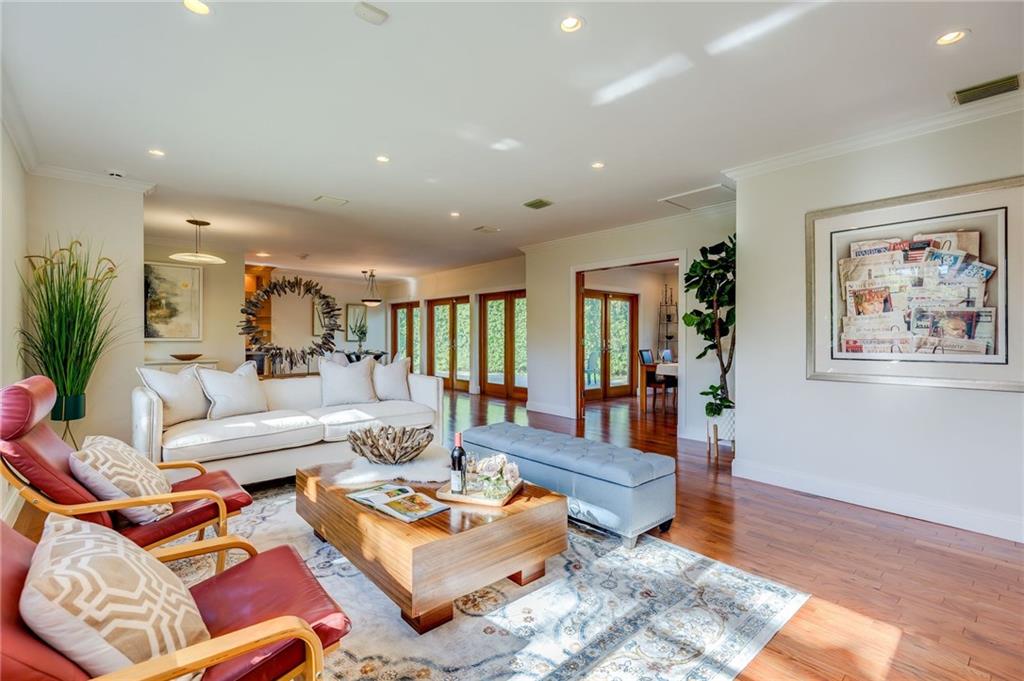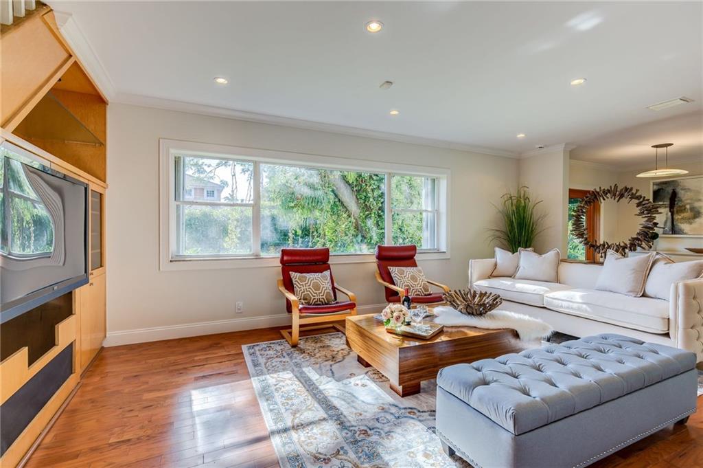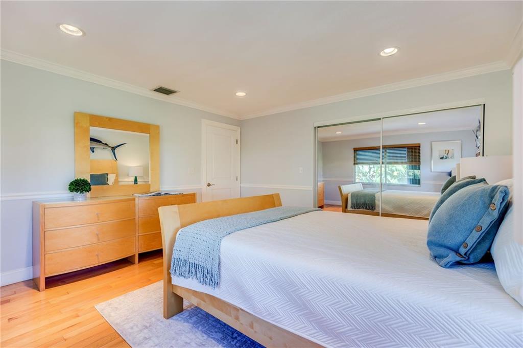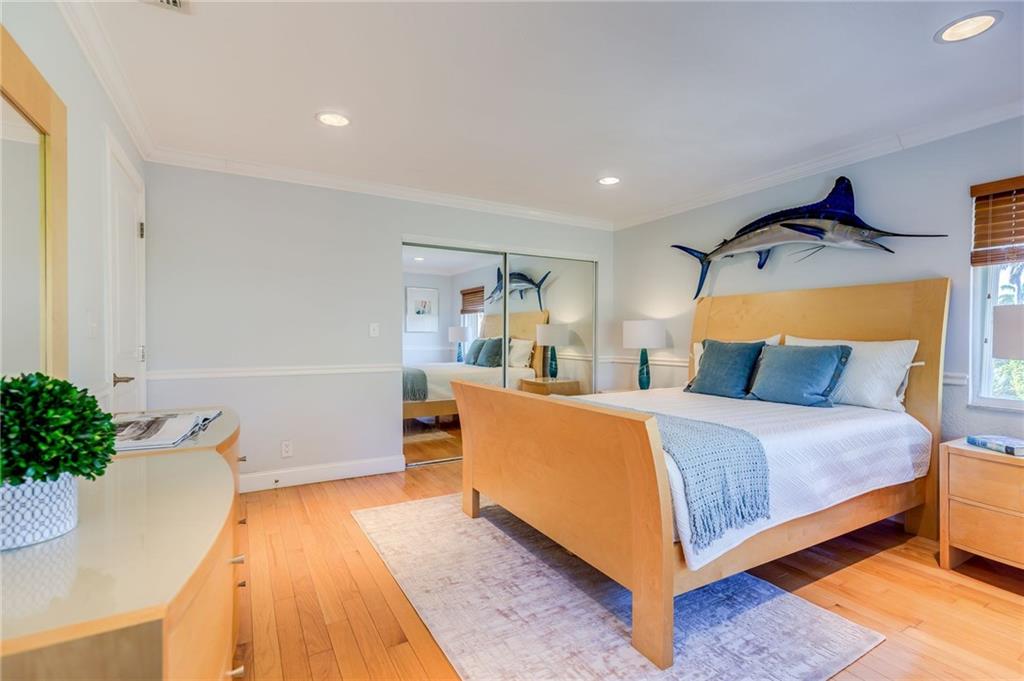 There is complete privacy in this oversized "point" dry lot. Mini-estate is bright and open with all wood floors, updated open kitchen and baths. Downstairs master, two large bedrooms upstairs. French doors to huge patio and pool, gated front yard. Wine cooler. Estate Sale.
