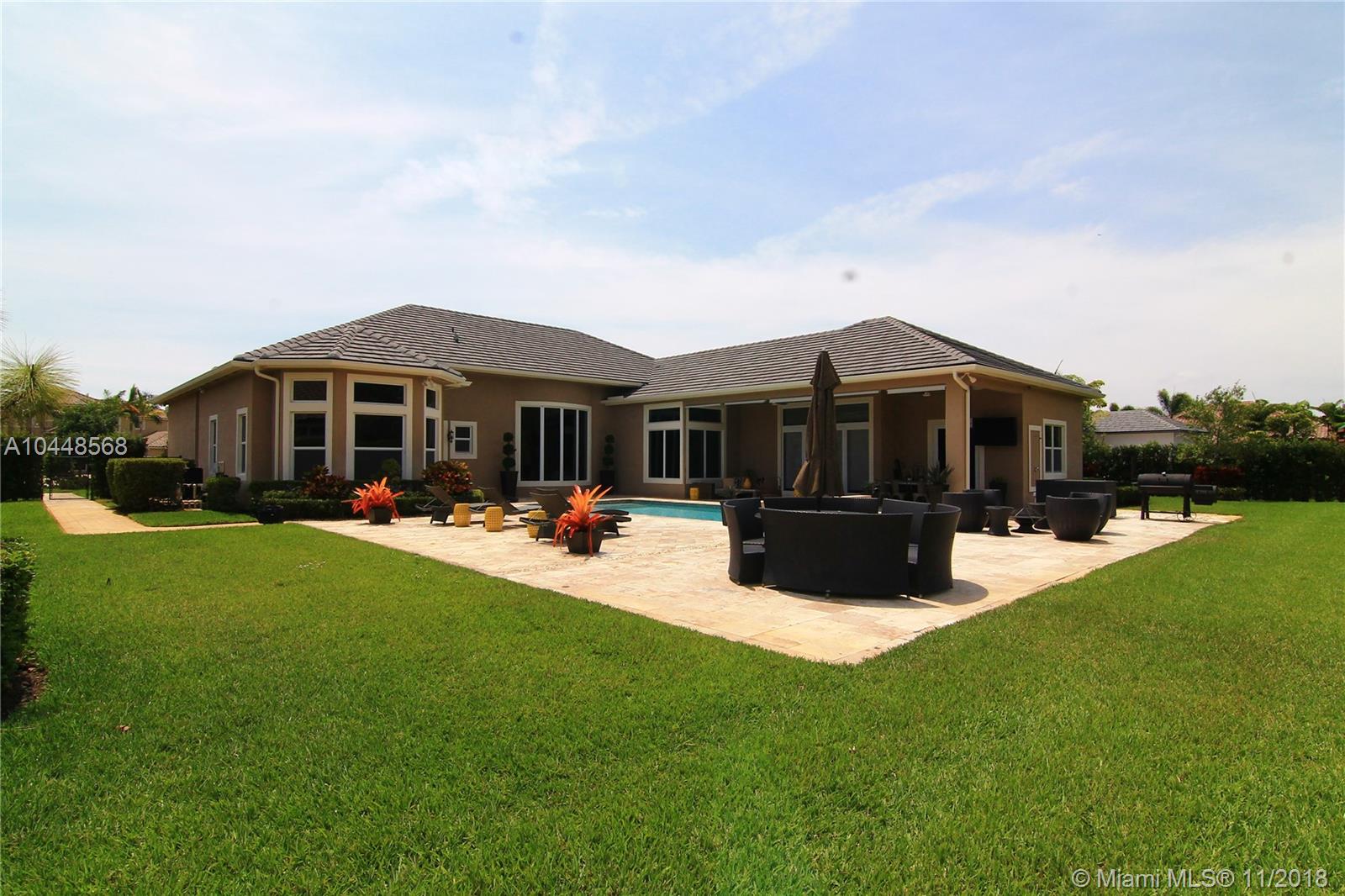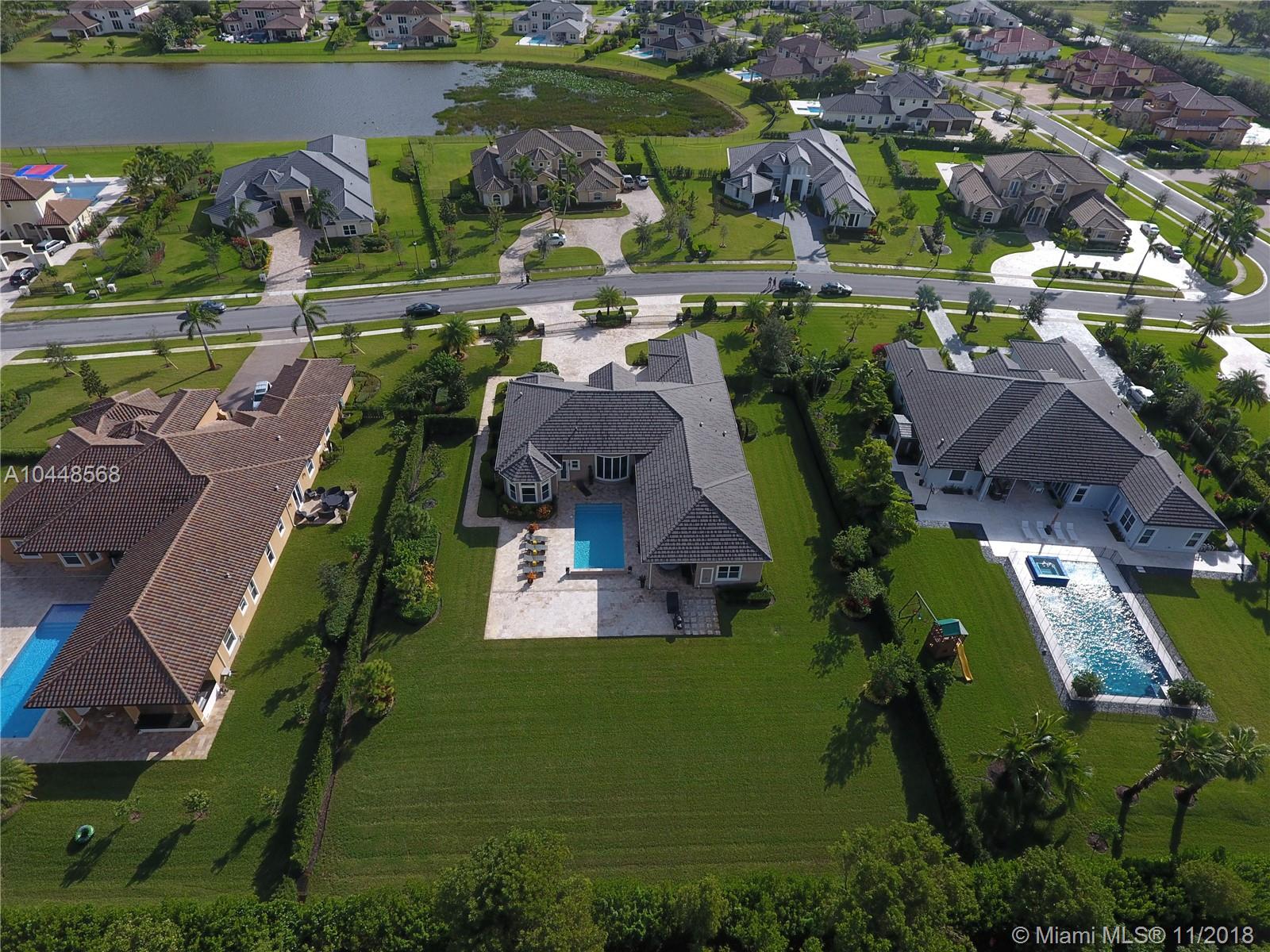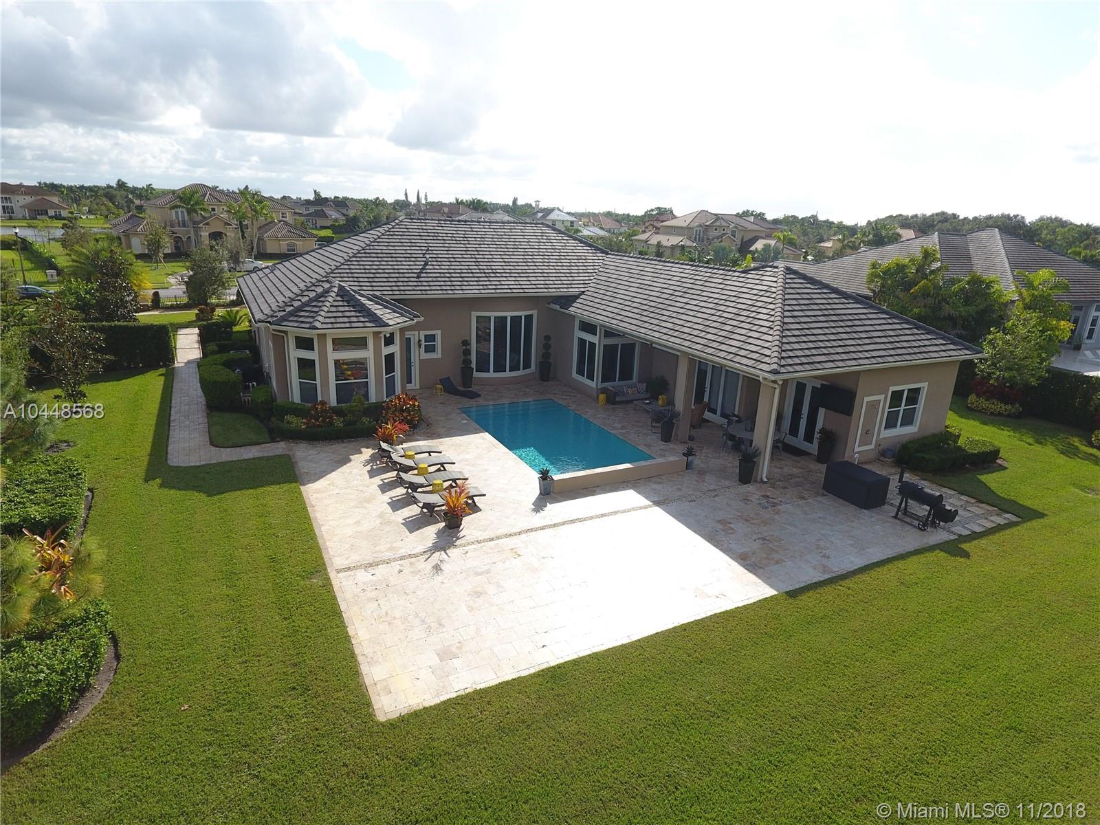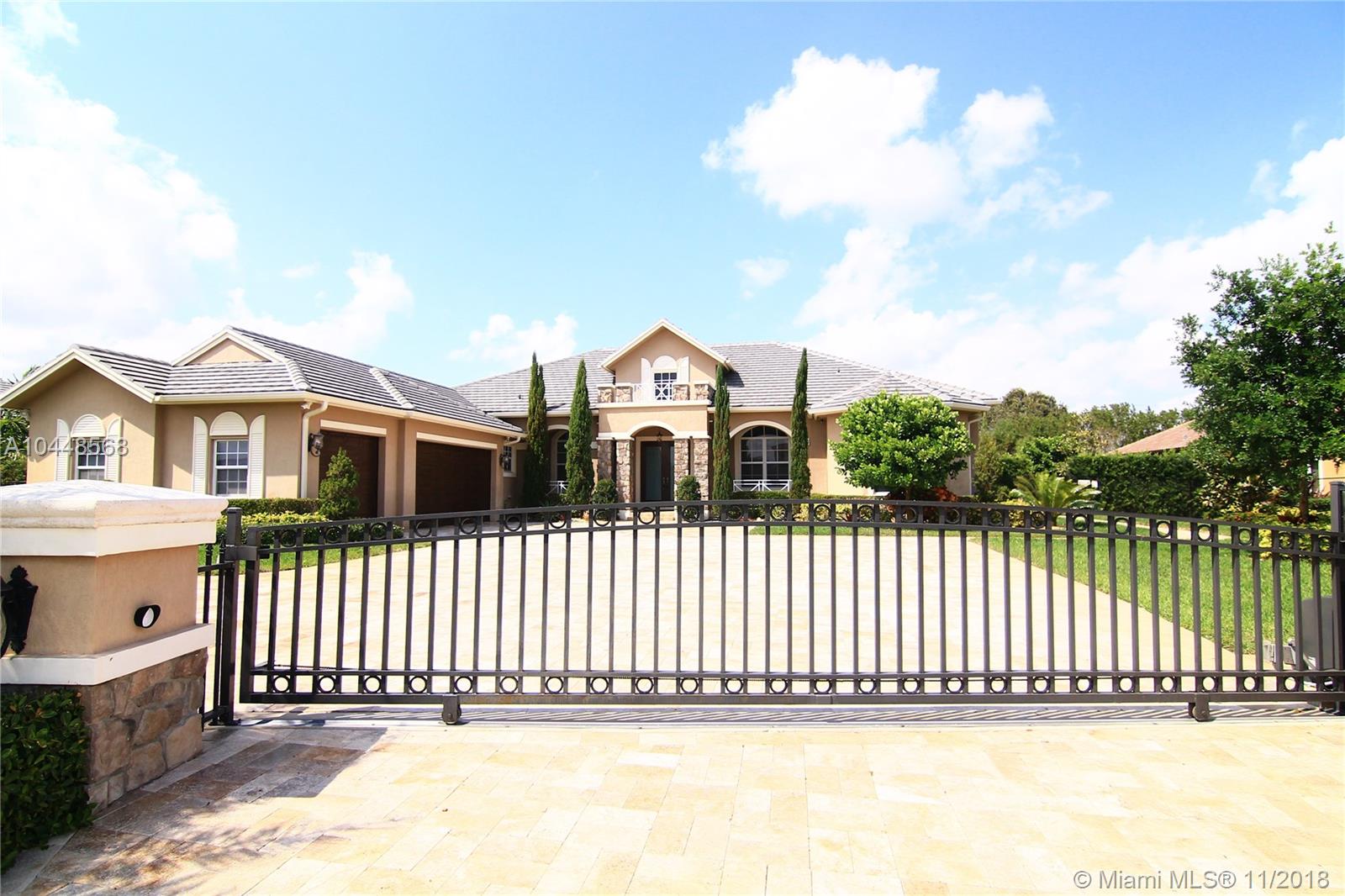 Builder's Acre. 5 Bed 5 Bath Office & Bar. Pool. 3 Car Garage. Built in 2014. Custom Enhanced Churchill design. French Country Elevation. Gated property Extended Travertine Noce Driveway. Impact Windows. Pool/led lights. Extended covered Patio with Travertine Noce tiles. Upgraded French Doors. Upgraded Gourmet Kitchen. Full Height wood cabinetry with soft close & crown, Granite Tops. SS appliances. Upgraded Bar Area with wine cooler & closet. Lutron lights/electrical upgrades. Audio Upgrade. Smart house, Security Cameras. Upgraded Master Bedroom. Wood Floors. Upgraded Master Spa Bathroom, Marble Floors, Tub, Double vanities, Double Showers & Rain Shower. Water Heater. Patio audio & outdoor TV. Landscape design. Two AC units. Premium Garage Cabinets & weather Tech Floor. Window Shades