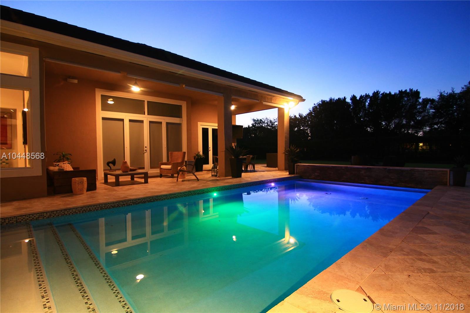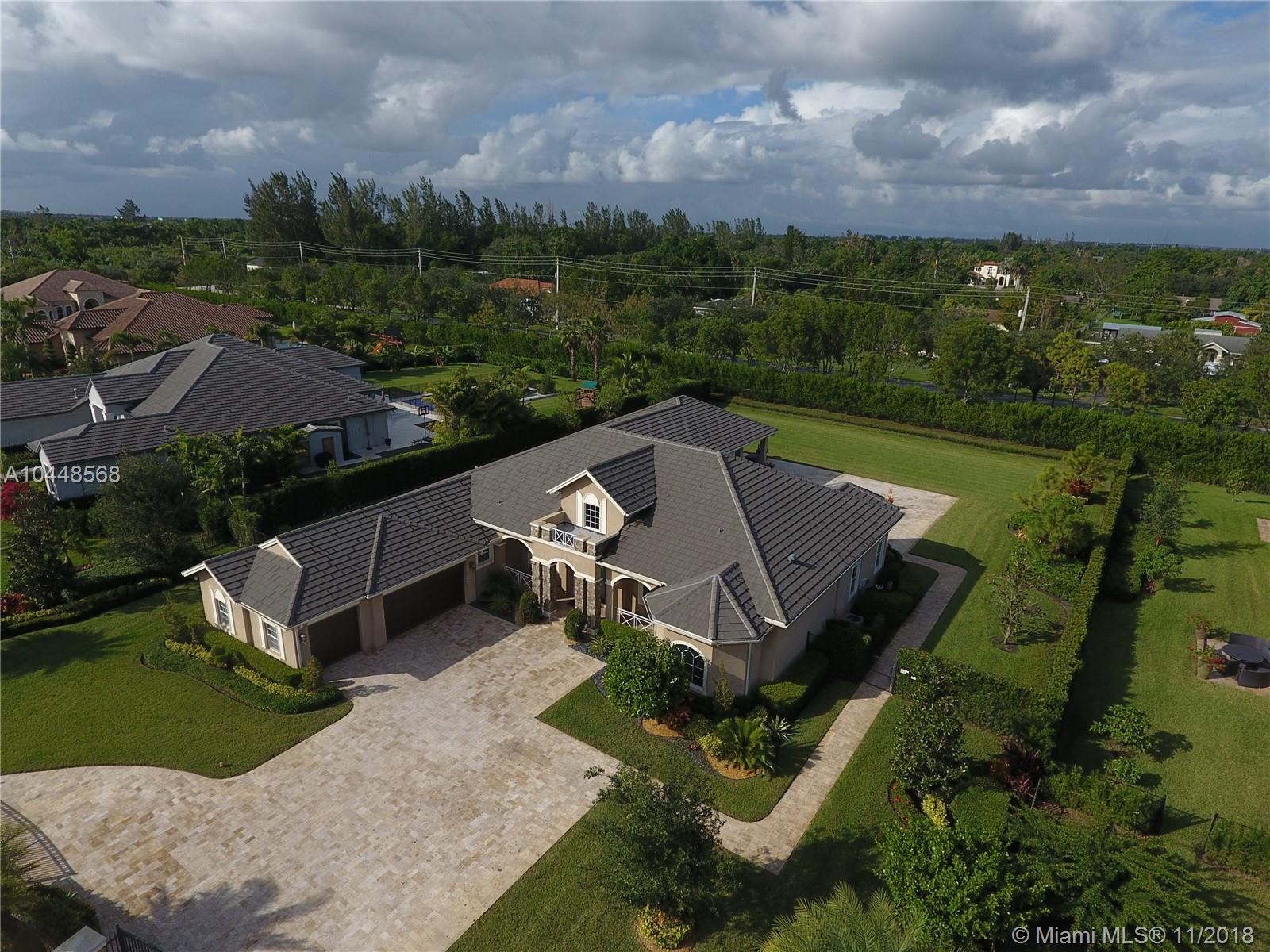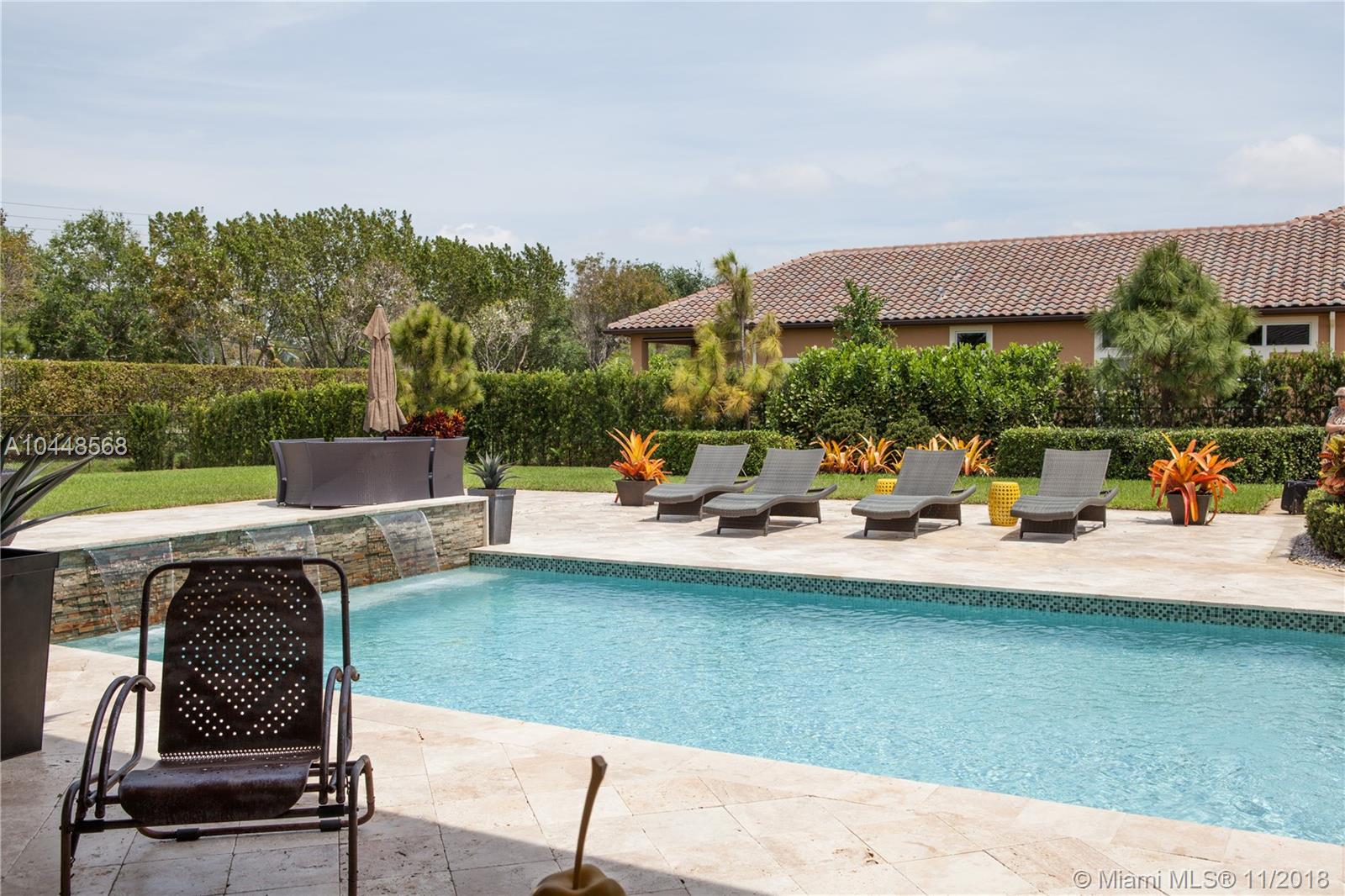 Builder's Acre. 5 Bed 5 Bath Office & Bar. Pool. 3 Car Garage. Built in 2014. Custom Enhanced Churchill design. French Country Elevation. Gated property Extended Travertine Noce Driveway. Impact Windows. Pool/led lights. Extended covered Patio with Travertine Noce tiles. Upgraded French Doors. Upgraded Gourmet Kitchen. Full Height wood cabinetry with soft close & crown, Granite Tops. SS appliances. Upgraded Bar Area with wine cooler & closet. Lutron lights/electrical upgrades. Audio Upgrade. Smart house, Security Cameras. Upgraded Master Bedroom. Wood Floors. Upgraded Master Spa Bathroom, Marble Floors, Tub, Double vanities, Double Showers & Rain Shower. Water Heater. Patio audio & outdoor TV. Landscape design. Two AC units. Premium Garage Cabinets & weather Tech Floor. Window Shades