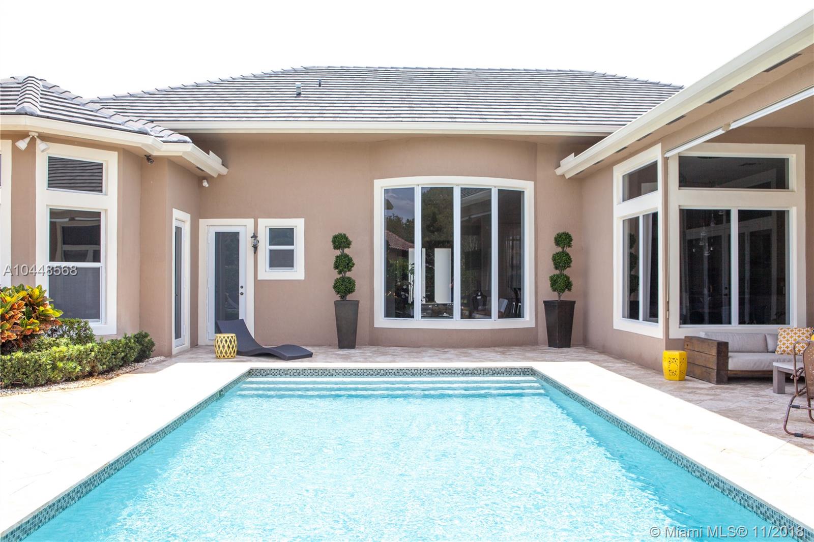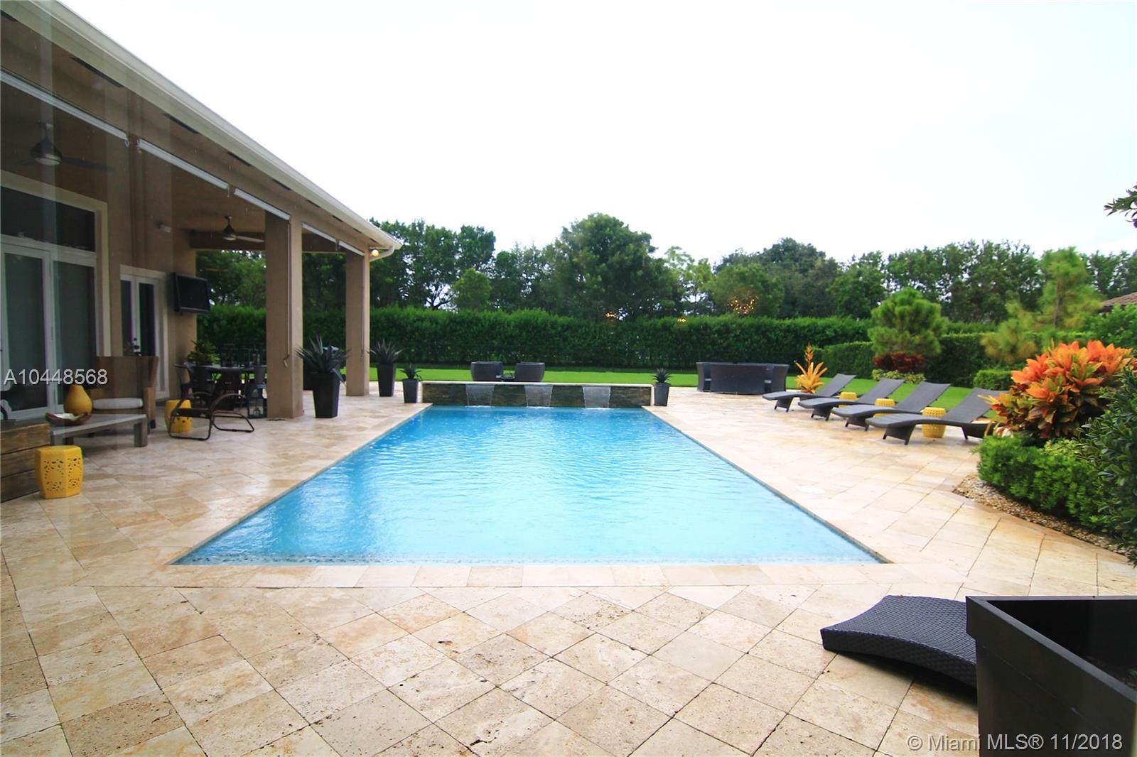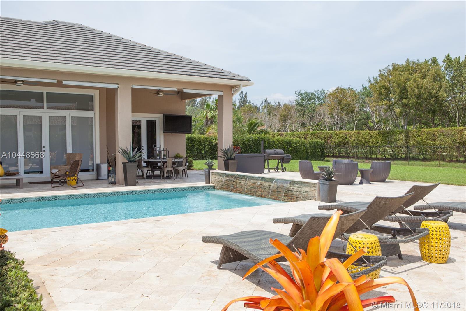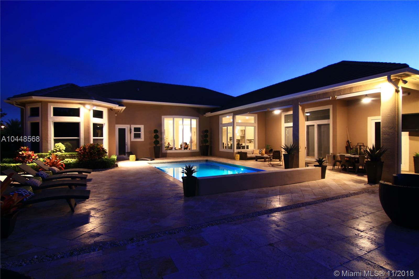 Builder's Acre. 5 Bed 5 Bath Office & Bar. Pool. 3 Car Garage. Built in 2014. Custom Enhanced Churchill design. French Country Elevation. Gated property Extended Travertine Noce Driveway. Impact Windows. Pool/led lights. Extended covered Patio with Travertine Noce tiles. Upgraded French Doors. Upgraded Gourmet Kitchen. Full Height wood cabinetry with soft close & crown, Granite Tops. SS appliances. Upgraded Bar Area with wine cooler & closet. Lutron lights/electrical upgrades. Audio Upgrade. Smart house, Security Cameras. Upgraded Master Bedroom. Wood Floors. Upgraded Master Spa Bathroom, Marble Floors, Tub, Double vanities, Double Showers & Rain Shower. Water Heater. Patio audio & outdoor TV. Landscape design. Two AC units. Premium Garage Cabinets & weather Tech Floor. Window Shades