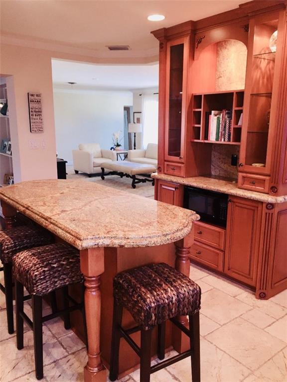 This gorgeous home sits on over 1/4 acre corner lot. Renovated from head to toe: stunning granite kitchen with center island, IMPACT WINDOWS, newer roof, new A/C, heated salt water pool, extensive covered lanai with built-in summer kitchen and bar, custom cabinetry, marble and wood floors throughout, separate laundry room, TWO CAR GARAGE, 3 BEDS and 3 FULL BATHS, separate living and family rooms. Owner to include 60" built-in TV and Bose surround sound 5-speaker system. HURRY! THIS GEM WON'T LAST!!