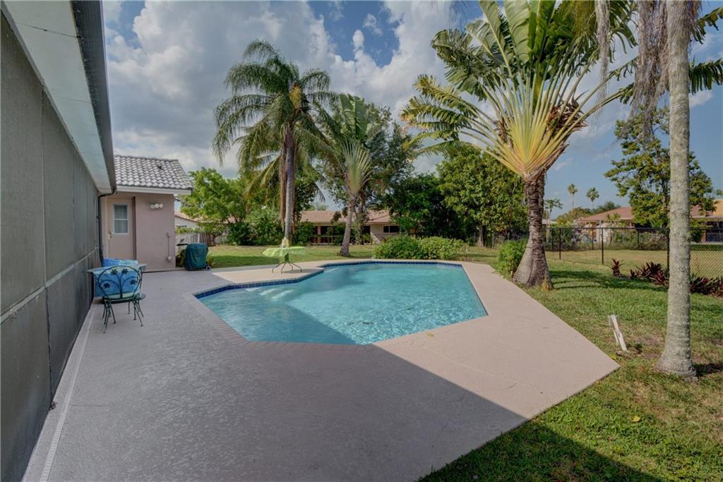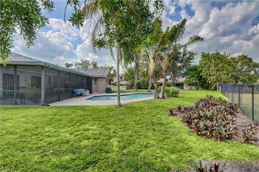Large and mint 4/2 situated on oversized 15,000 ft. cul de sac lot. Newly remodeled Sparkling Pool. Remodeled Kitchen and Baths, Breakfast area, Inside Laundry Room. Elegant Tile and Cherry Wood Floors throughout living areas, Soaring Vaulted Ceilings with open design, Huge 37/17 covered patio great for entertaining. No HOA or HOA Fees. Great Neighborhood. Close to Everything: Parks , Shopping, Mall, Sawgrass Expressway.