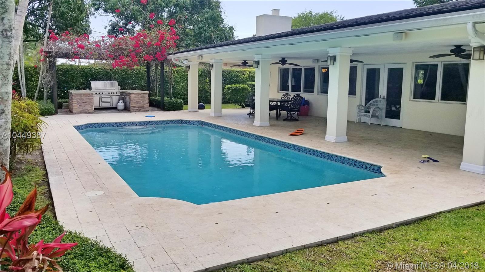 Corner lot on prestigious PINECREST. Beautiful one story single family pool home with a modern flair and plenty of room for entertainment inside and out. Light, bright and airy with 3 bedrs and 3 baths, office, walk-in pantry and 2 car garage. Spacious living and dining room area overlooking the pool and large backyard. Great open kitchen with SS appliances and granite counter tops, alarm, pool and custom outdoor kitchen with 54" Viking grill. Updated a few years back with engineered distressed patina maple wood, marble floors and imported Cuban tiles, Pella and PGT hurricane impact windows, NEW AC and much more. Ample Chicago brick driveway w/plenty of room for a Boat and parking. A true Gem! Also avail. for rent see A10454026.
