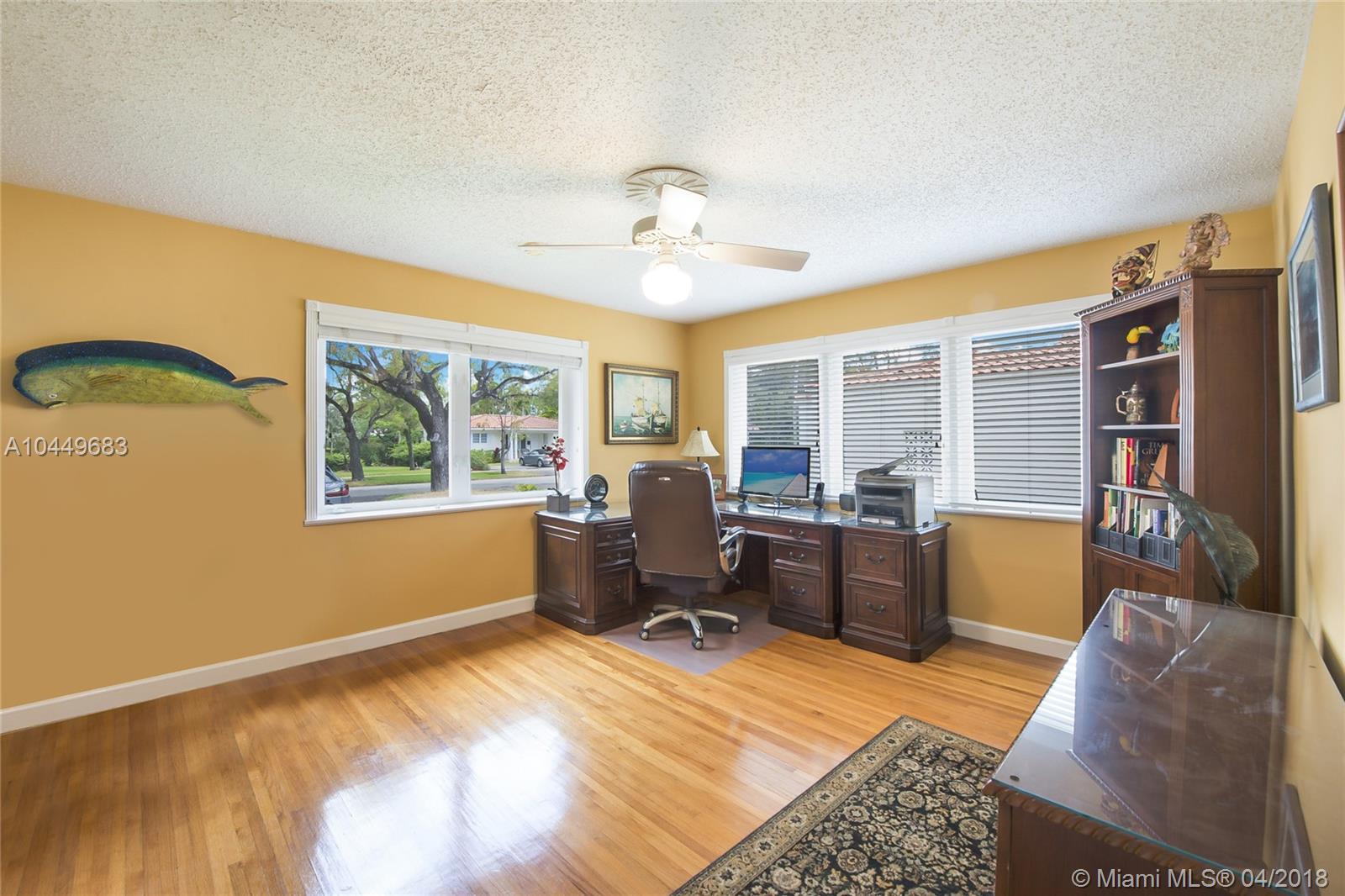 This wonderful home sits on a 12,500 square foot lot within walking distance to over 150 restaurants and shops on Miracle Mile! The impeccably maintained house features a great pool surrounded by an amazing coral rock deck, impact windows and doors, an upgraded kitchen, solid oak wood floors, beautiful landscaping and much more! The price is firm.