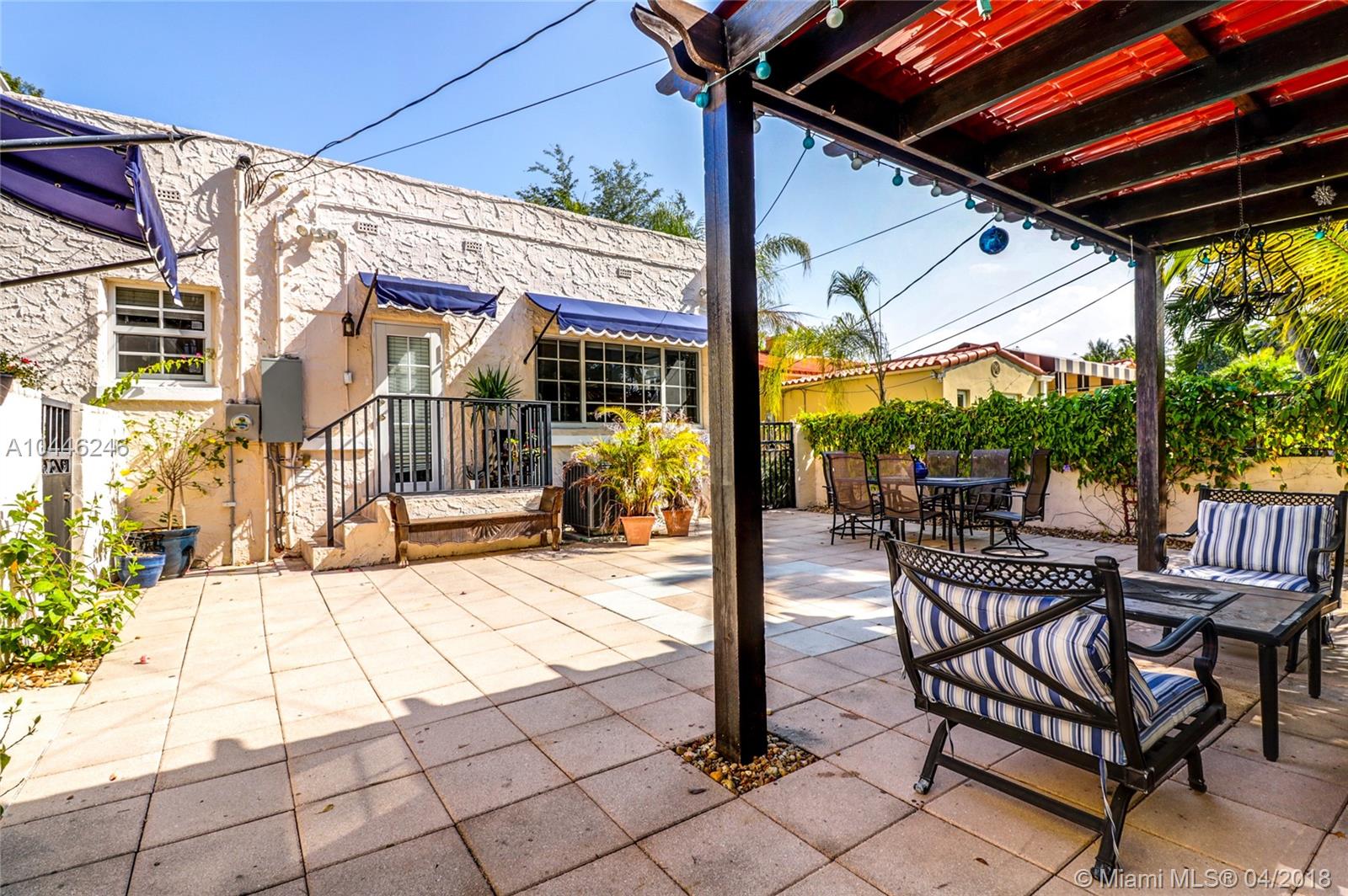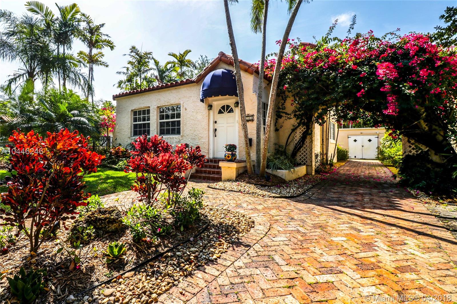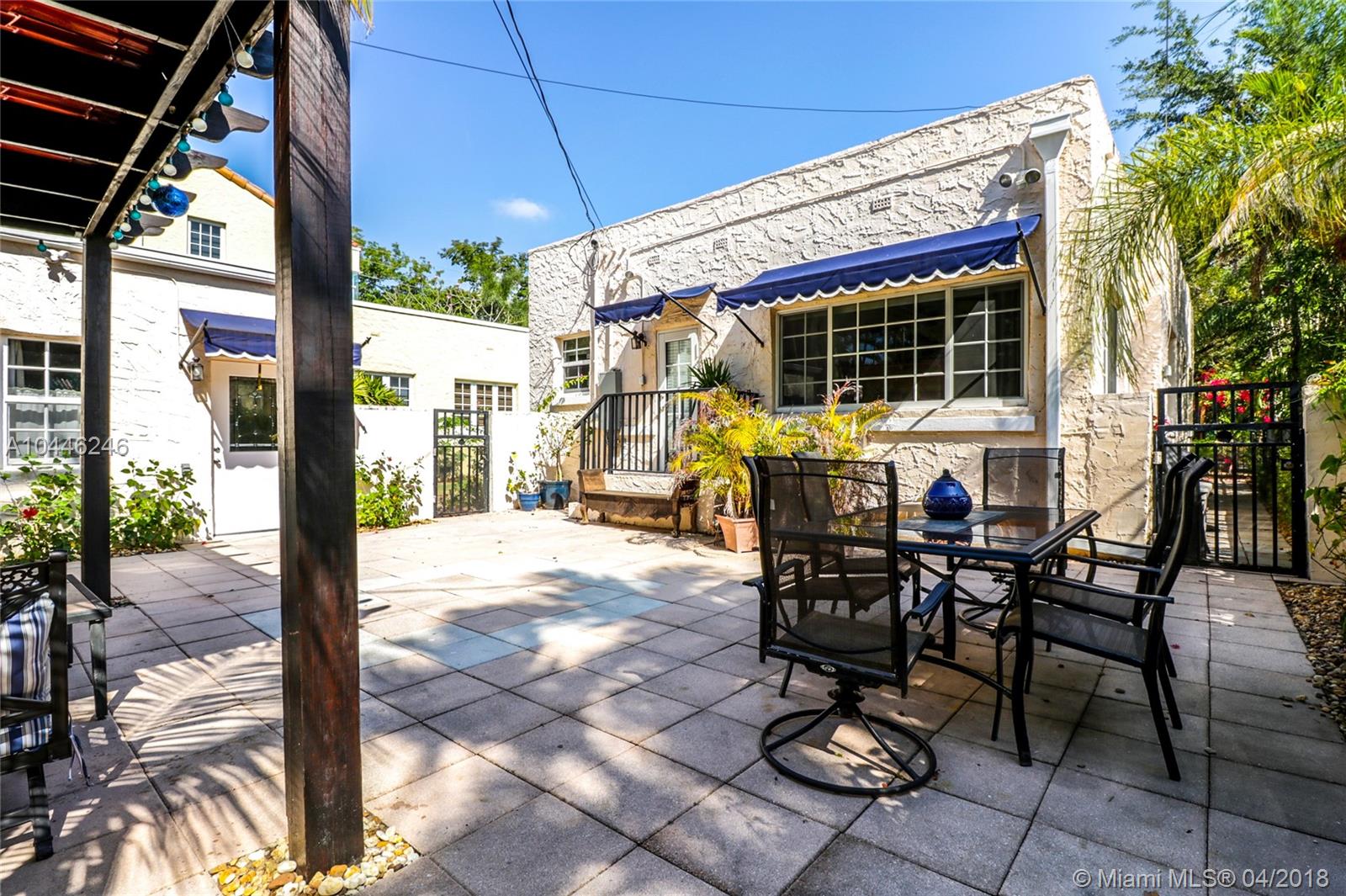Undeniable Gables charm flawlessly renovated to modern standards. Steps from the Coral Gables Country Club & Granada Golf Course, this beautiful 2/2 home with 1/1 cottage offers: oversized impact windows and doors, Brazilian cherry floors, new AC, custom cabinets and built-ins throughout, updated electrical and plumbing + sewer, high-efficiency tankless water heater, custom closets, and new roofing. Historic arches, French doors, and wood-burning fireplace have been perfectly preserved. Marble baths were recently redone. Remodeled kitchen features granite counters, travertine backsplash, stainless steel appliances, and plenty of storage. Inviting backyard patio includes pergola, café lights, mature landscaping, and iron gates and fencing. Cottage has full bath and own AC unit.