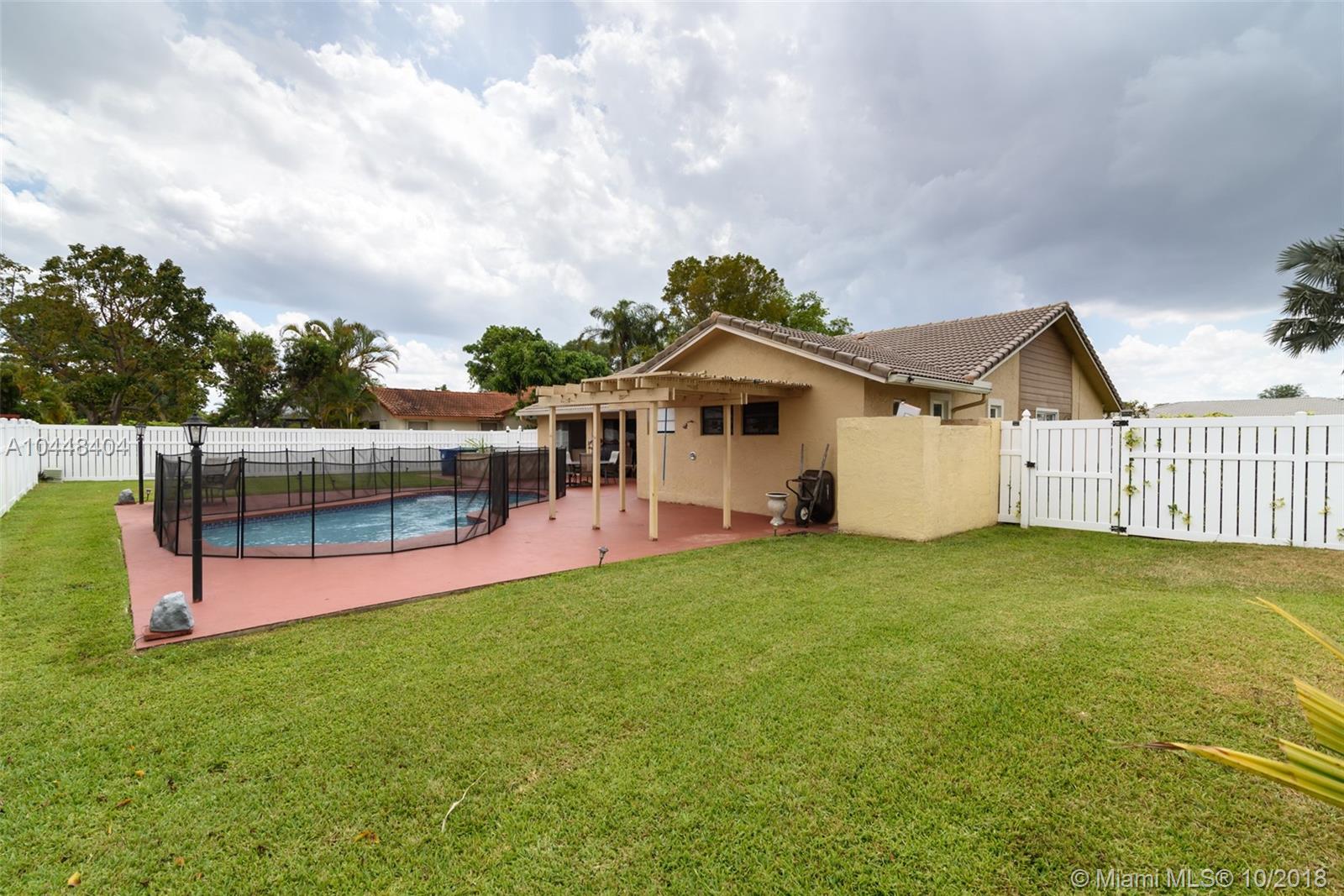 Start 2019 in your new home where your family will enjoy the privacy from the PVC fencing on this oversized corner lot. This 4/3 pool home, with a spilt floor plan, is situated in the heart of Coral Springs features wood beamed ceilings, separate formal dining and breakfast area, an outdoor bathroom with shower when leaving the pool, large back yard with covered patio area pit for grilling or for gardening, and updated kitchen and bathrooms. Home also outfitted with camera security system so you will always be able to monitor your property while away. Enjoy your surround sound system throughout the interior and exterior of home; wiring and speakers will stay; however, receiver not included in sale. All windows are hurricane resistant except for sliding glass doors.
