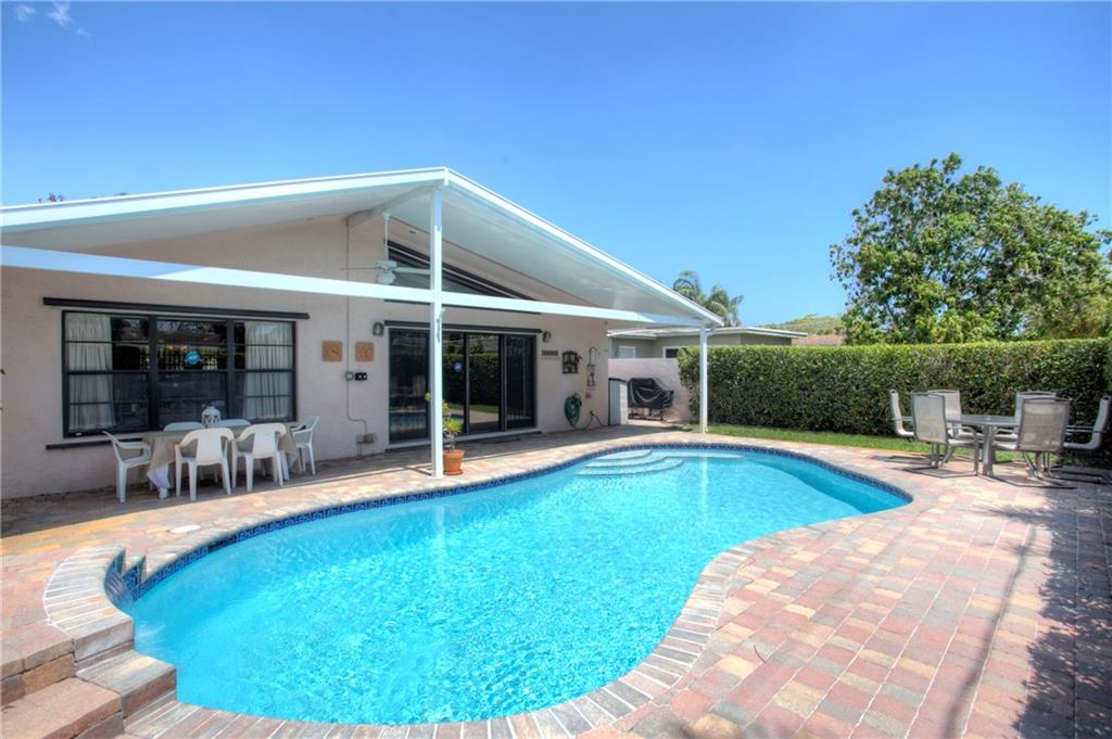 The Search for a perfect SO FL home ends here. This 2BR 2BA home w/ FL Room & fully permitted Sun Room easily converts to 3BR/office/den. Heated Salt water pool, CBS privacy fenced backyard & 1 Car garage w/built in cabinetry. Beautiful Sunroom addition features Vaulted Ceilings & Skylights, Large Shed/Workshop, Irrigation on well w/rust prevention & fertilizer built in & an 8-Camera Security system. Great location overlooking Middle River Terrace Community Dock. A short walk to Wilton Drive!