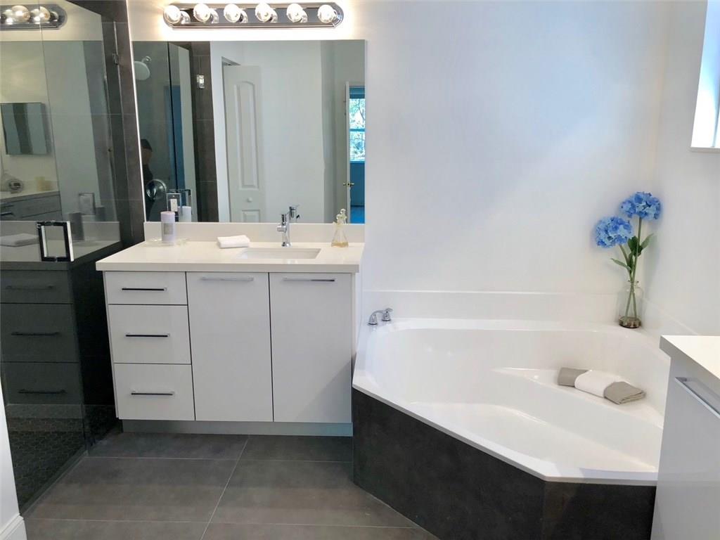 Lovely lakefront home. Completely remodeled with new modern style cabinets, stainless steel appliances, quartz countertops and marble backsplash. Waterproof laminate floors throughout. Spacious, open layout. Screened patio overlooking water. Magnificent sunset views. Both bathrooms completely redone! If you are looking to move into a ready, modern home, this is the one! Gated community of Lennox Isles offers fitness center, tennis courts, pool, playground, basketball courts, walking trail and more!