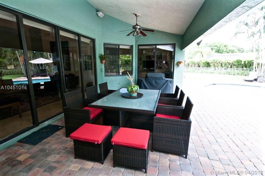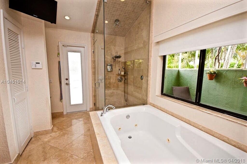 Circular paver 10 car driveway leads to etched glass French door entry. Travertine marble floors throughout. Volume ceiling in living area. Custom chef's kitchen with center island, double wall ovens, microwave drawer, exotic granite, cooktop has downdraft exhaust. Breakfast area and family room. Closests with custom cabinetry. Split plan 5 bed & 3 baths. All baths have custom cabinetry, frameless shower doors. Master bath has steam shower, Jacuzzi tub, door to pool patio. Pool access from hall/cabana bath as well. Custom laundry room. 2 ½ car garage with custom cabinetry and sink. 3 zone a/c. Outside oasis with private, secure yard, lighting, large pavered patio deck with covered sitting area, & mediation garden. High end finishes, great school district. Close to shopping & expressways.