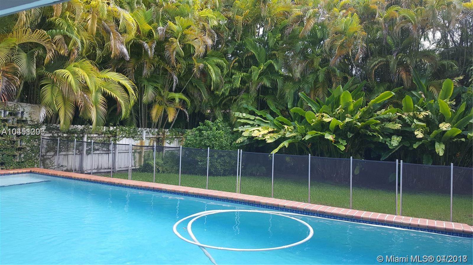 Great opportunity to live in Pinecrest on grove like lush private yard. Enter to gleaming laminate floors to 3 bedrooms, 2 bath (split) and bonus room (den, family room office). White kitchen has all new stainless steel appliances, eat in area. Most room open to over sized pool and party patio, new pool pump and marcite finish. Open patio living with lush garden views. Room to play and park your boat. Large 2 car garage. Walk to Palmetto Elementary + Middle schools. An exceptional value.
