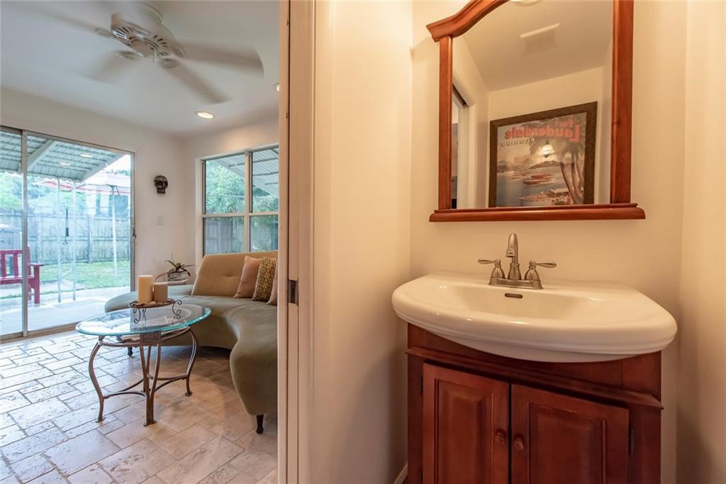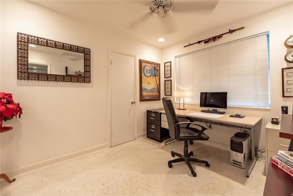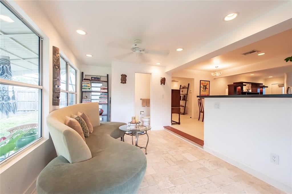 This 2 bed 1.5 bath home has a bright open Living/Kitchen/Florida room, updated kitchen w/granite counters, wood cabinets, and stainless steel appliances. Large fenced yard, great for outdoor entertaining, room for a pool. Terrazzo floors throughout. Bonus room can be used as den/office. One car garage. Large laundry/storage room for extra storage. Newer roof (2015). Updated electrical. Boat parking on side of house. Great for first time home buyers or investors. Don't miss this cute, move in ready home!