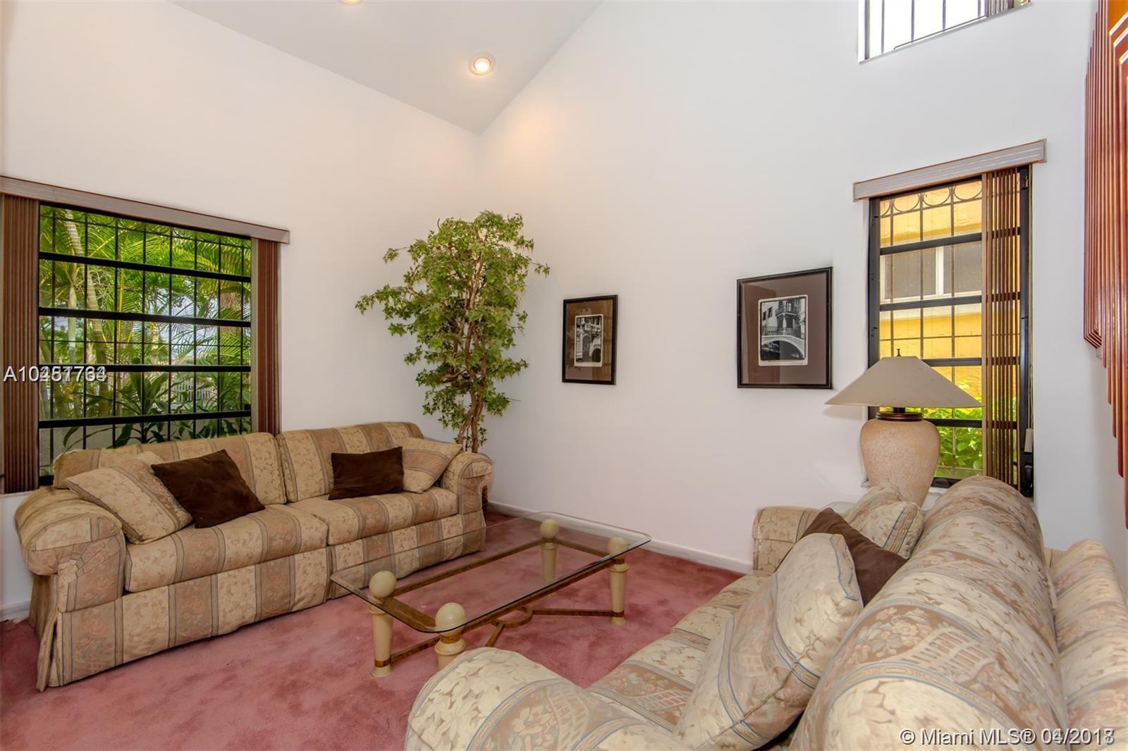 Spacious north Gables two-story home,3 bed/ 2.5 baths/ 2-car garage on a beautiful tree lined street. Home is 2490 SF house on a 5250 SF lot including a large patio in the backyard for entertaining. Bedrooms are on 2nd floor and master bedroom has a balcony. Living and dining rooms have 16' tall ceilings while bedrooms have 9' ceilings. Family room can be converted into 4th bedroom. Recently painted inside and out and features a home central vacuum system and 2 central A/C units. New neighborhood park on the street. Minutes from downtown Coral Gables, restaurants, shops, schools, youth center. home warranty available.