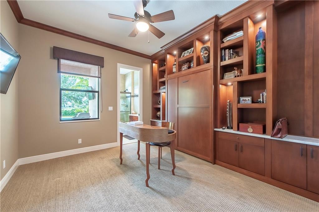 LOCATION, LOCATION, LOCATION, BEAUTIFUL HOME LOCATED ON THE 12TH HOLE, FEATURING 4 BEDROOMS, PLUS AN OFFICE, 3.5 BATHS W LOFT. A KITCHEN DESIGNED FOR A CHEF, LG COOKING ISLAND, SS APPLIANCES, GAS STOVE, EAT IN KITCHEN, EXPANDED DINING ROOM, STUNNING MASTER SUITE WITH LUXURIOUS BATH. IMPACT WINDOW AND DOORS, FIREPLACE. HUGE PATIO W TRAVERTINE MARBLE, LUSH LANDSCAPING, HEATED POOL, AND SPA, MOSQUITO SYSTEM OVERLOOKING THE GOLF COURSE. THIS ONE OF A KIND HOME IS IMMACULATE AND READY TO MOVE INTO.