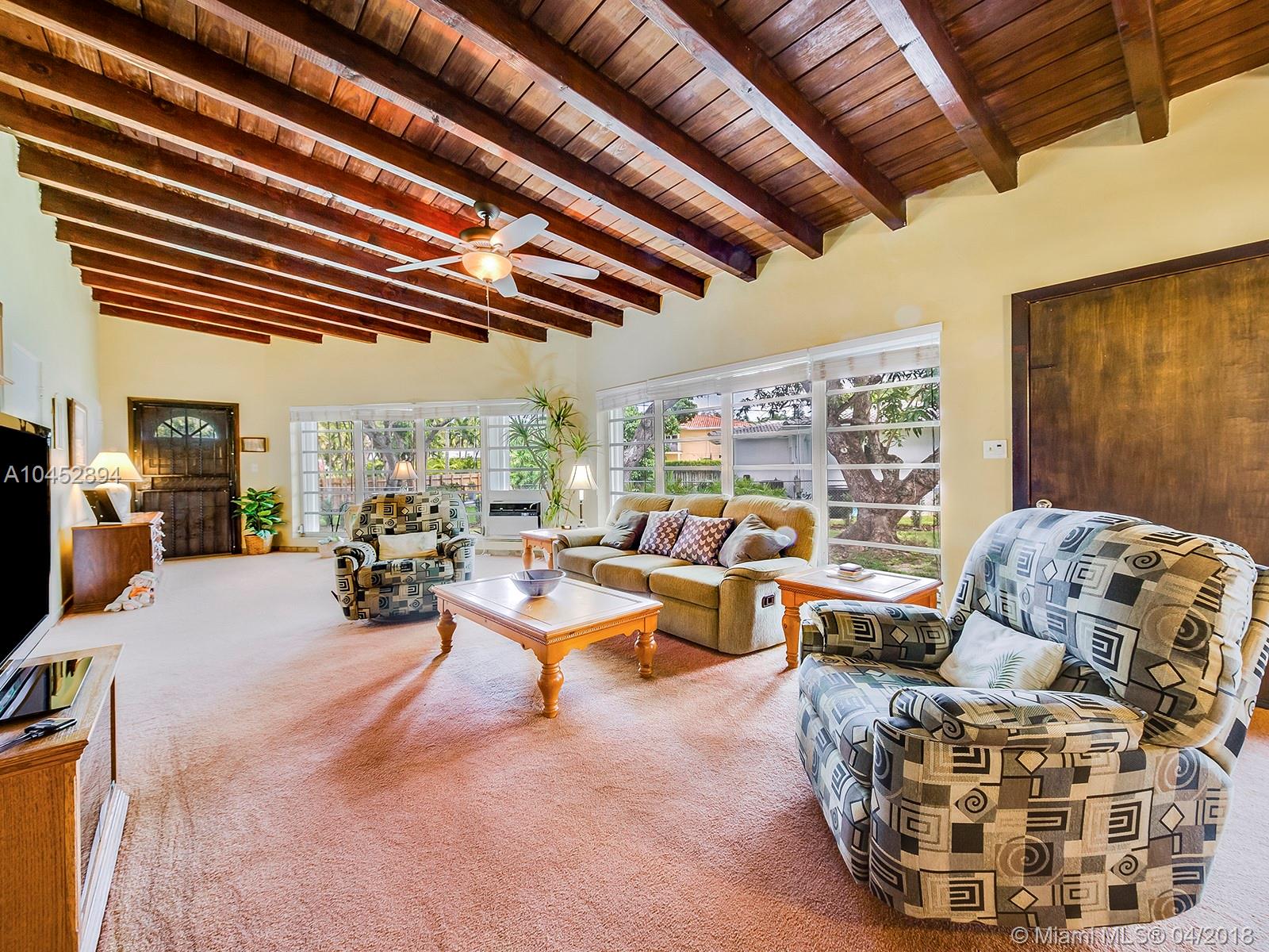 One of a kind and hard to find, this beautiful home is just a few blocks to Biscayne Bay. Situated on an over-sized lot with plenty of room for a pool. Open and airy floor plan with lots of windows bringing the outdoors to the inside accompanied by a formal living area with massive corner stone fireplace. Hardwood and Cuban tile floors, kitchen and family room combination. 3+ Bedrooms downstairs and 3+ upstairs. Lovingly cared for and ready for your personal touch. Do not miss.