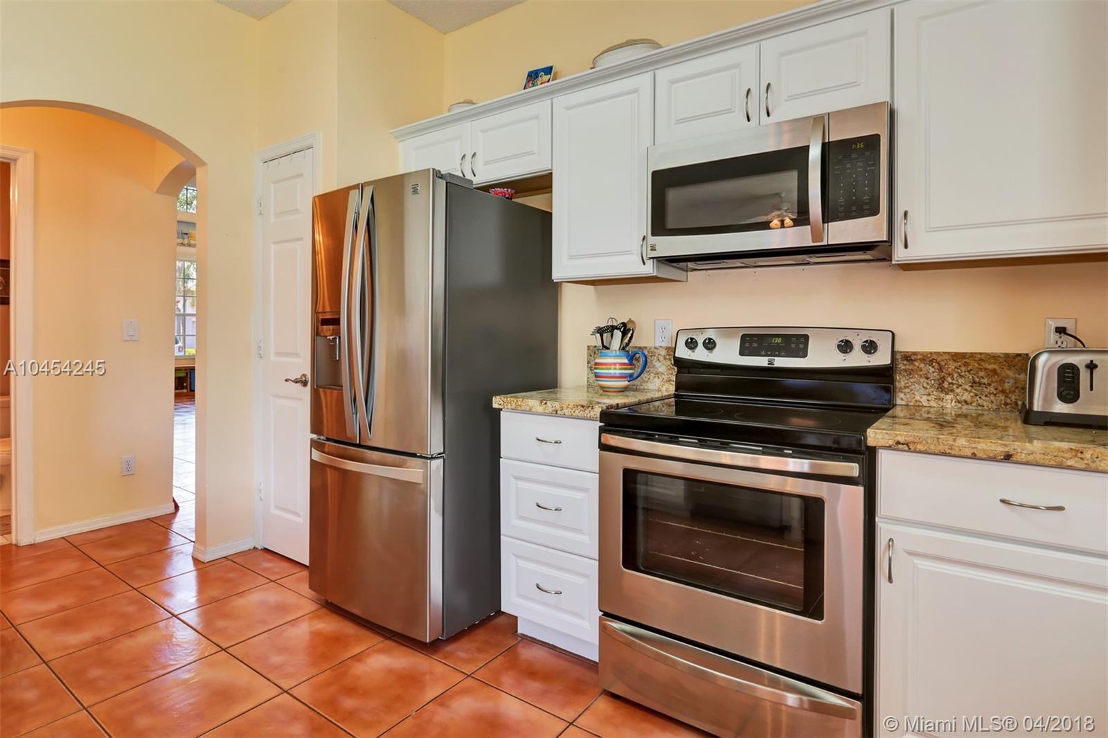 Beautiful cul de sac home located in sought-after community. High ceilings, plenty of windows and natural light. Kitchen redone with Granite counter tops and Stainless Steel appliances, large snack counter area leading to Family room, breakfast area, large Master bedroom featuring a tray ceiling, double door entry and a walk-in closet. Hurricane shutters for the entire home. Great community, minutes from major highways and a low HOA fee.