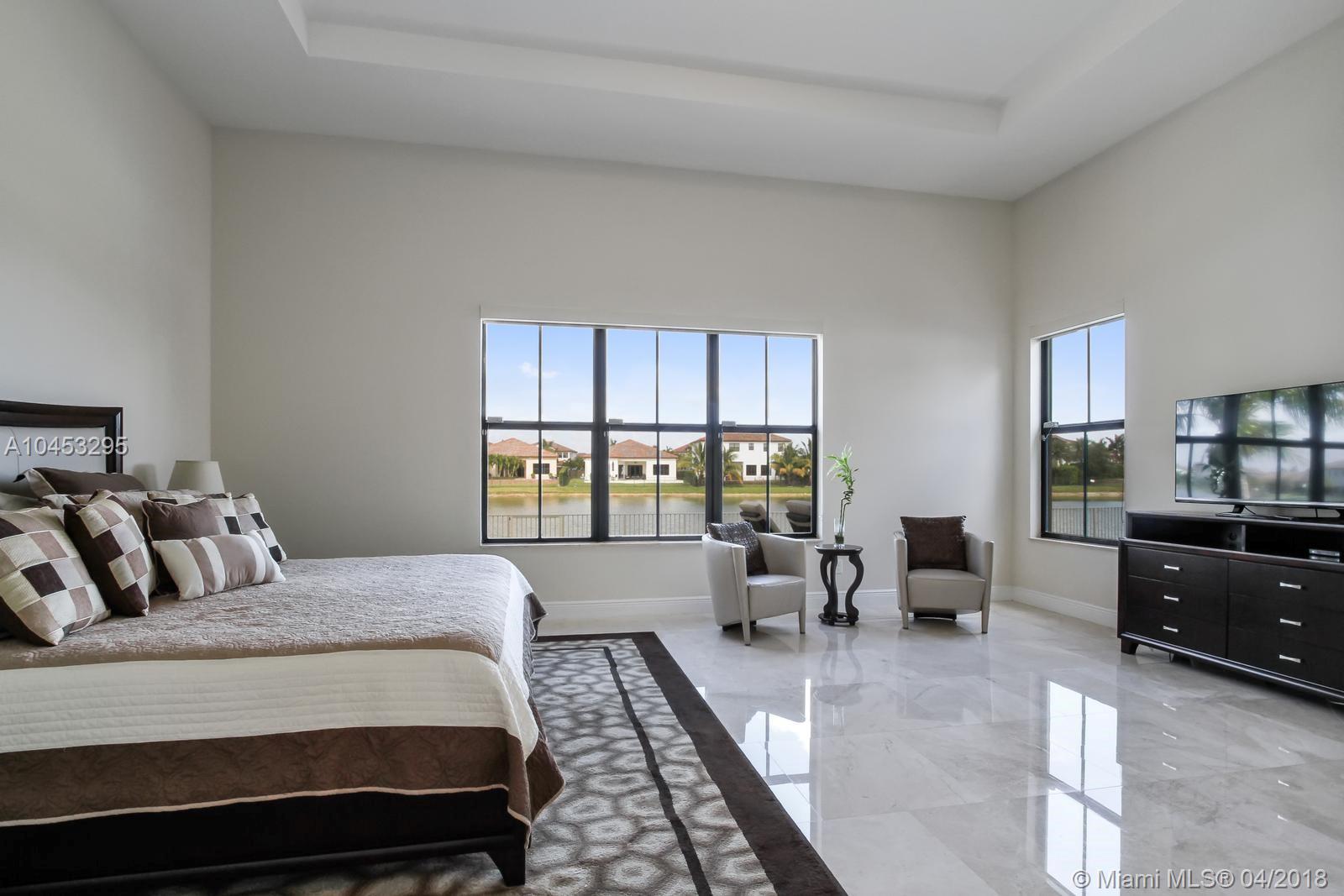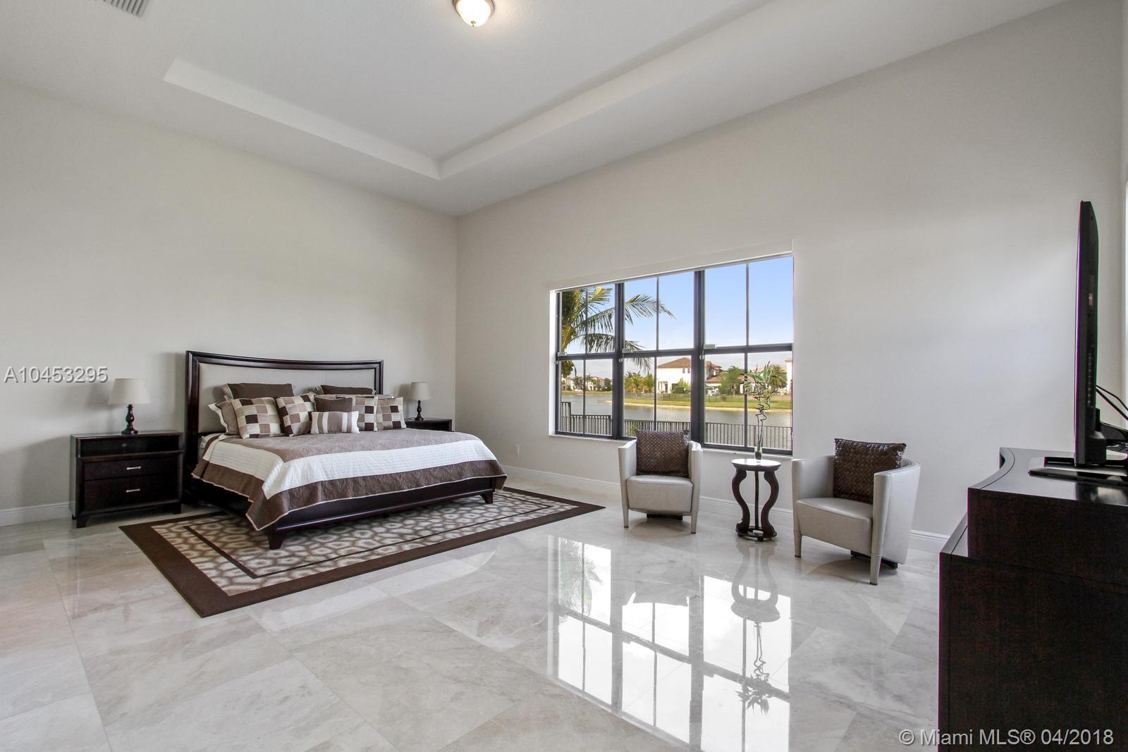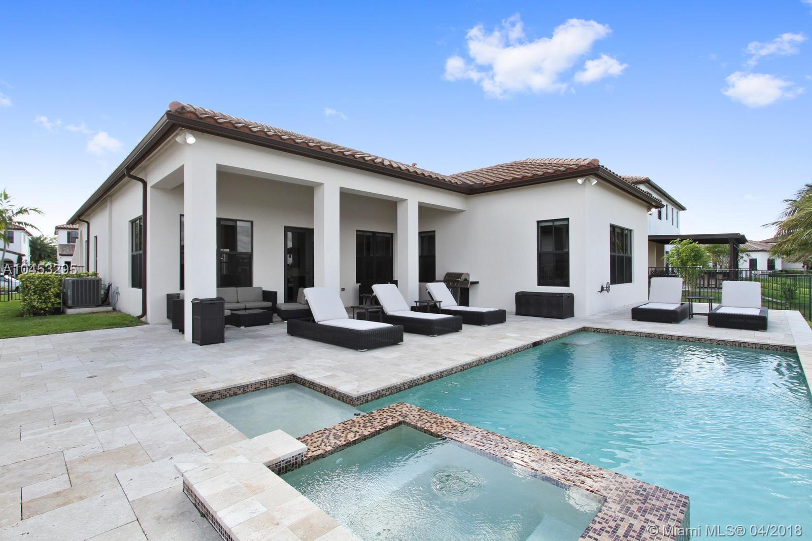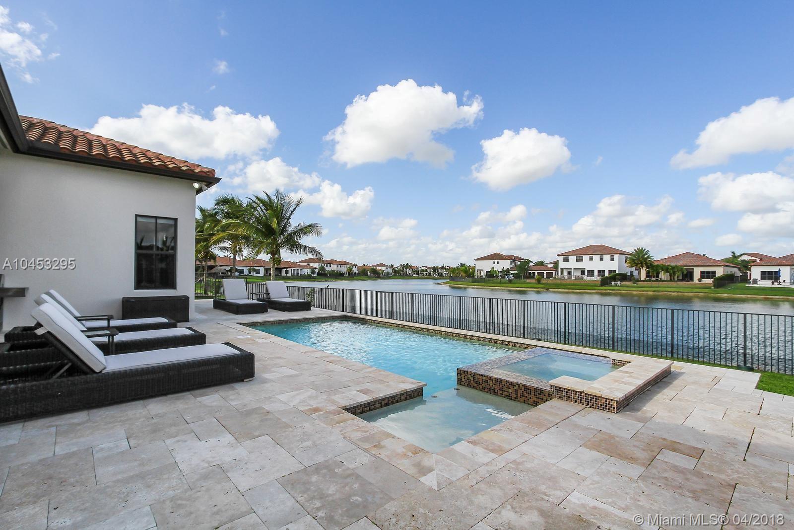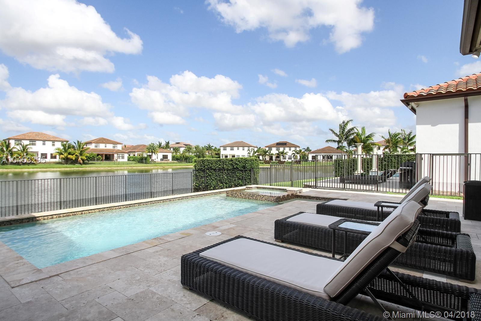 Enjoy beautiful lake views when you walk in to this spacious and elegant home with filled with natural light, marble floors, high ceilings and upgraded finishes. The AMADOR model has 4 bedrooms, 3 bathrooms, walk in closets and a spacious master suite with his and hers closets. Enjoy the heated salt water pool and jacuzzi spa in this upgraded lakefront backyard finished with travertine floors. Located in one of the best private communities in Cooper City, Monterra has a beautiful club house with resort like amenities including tennis and basketball courts, fitness center, club room, pool table, dog park and community pool. Assigned to A+ Schools.