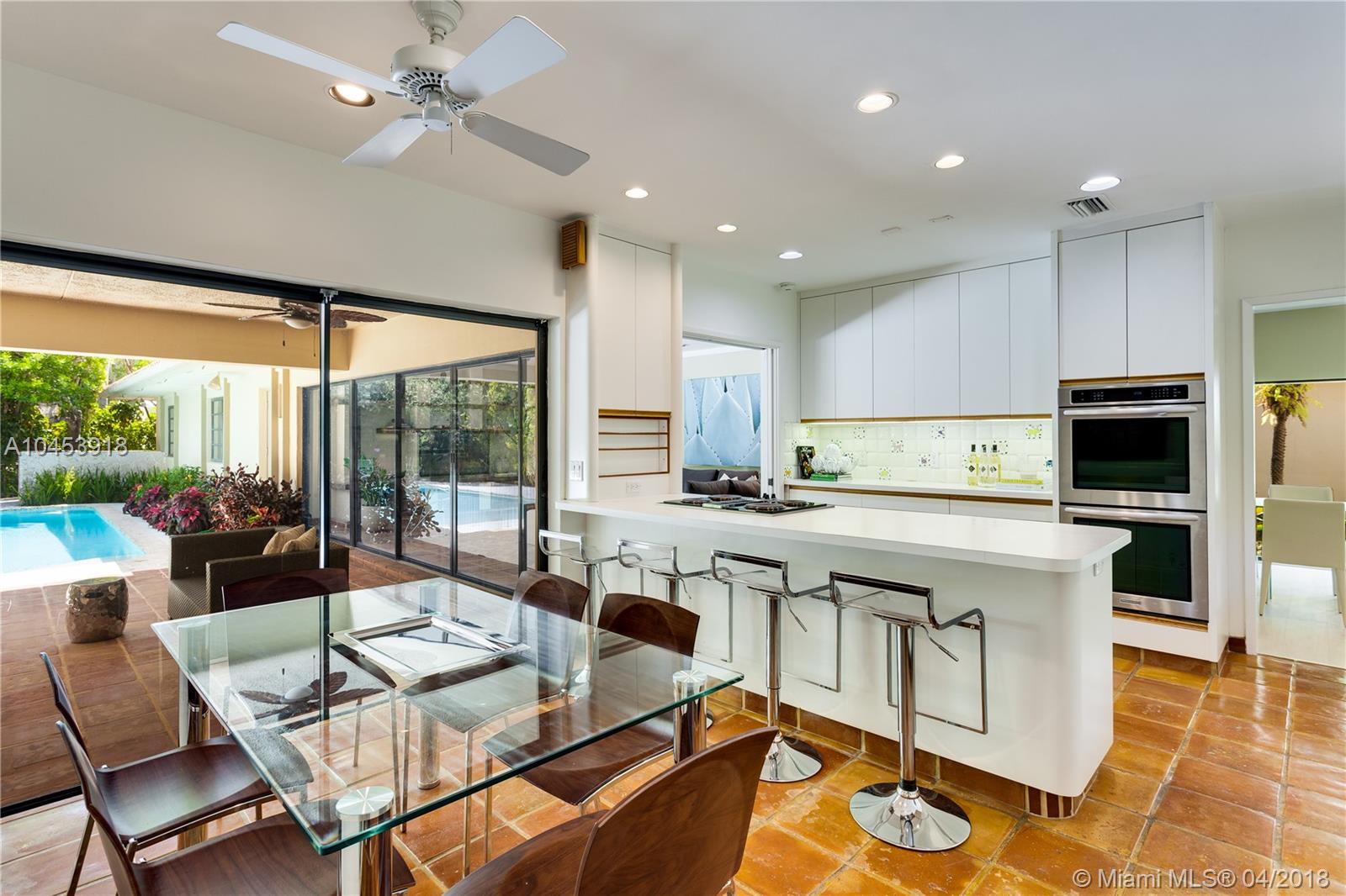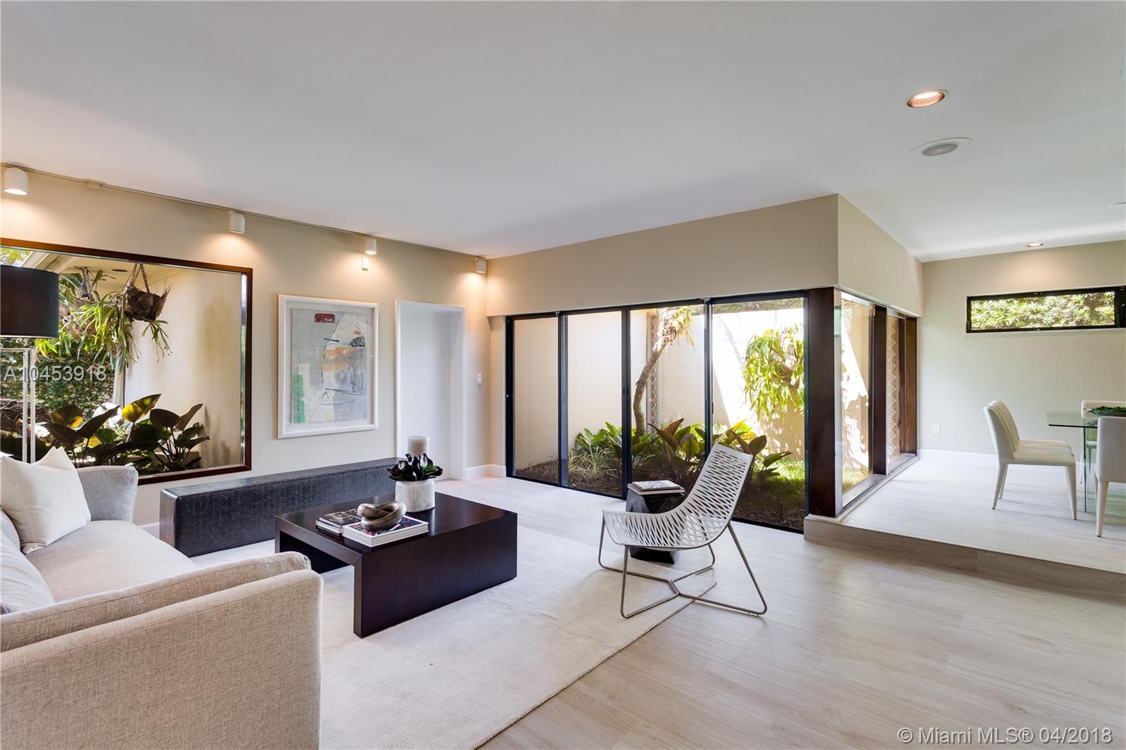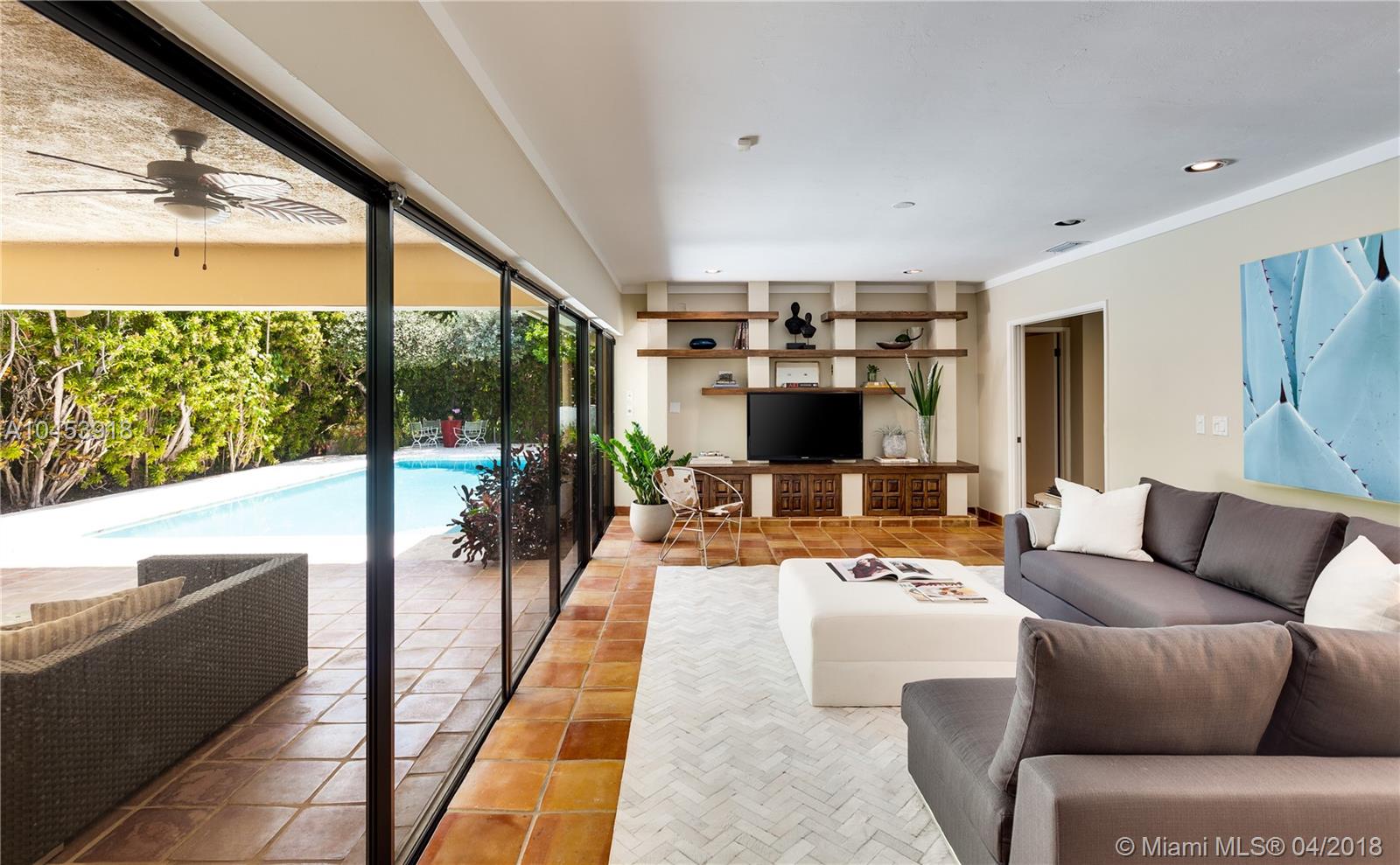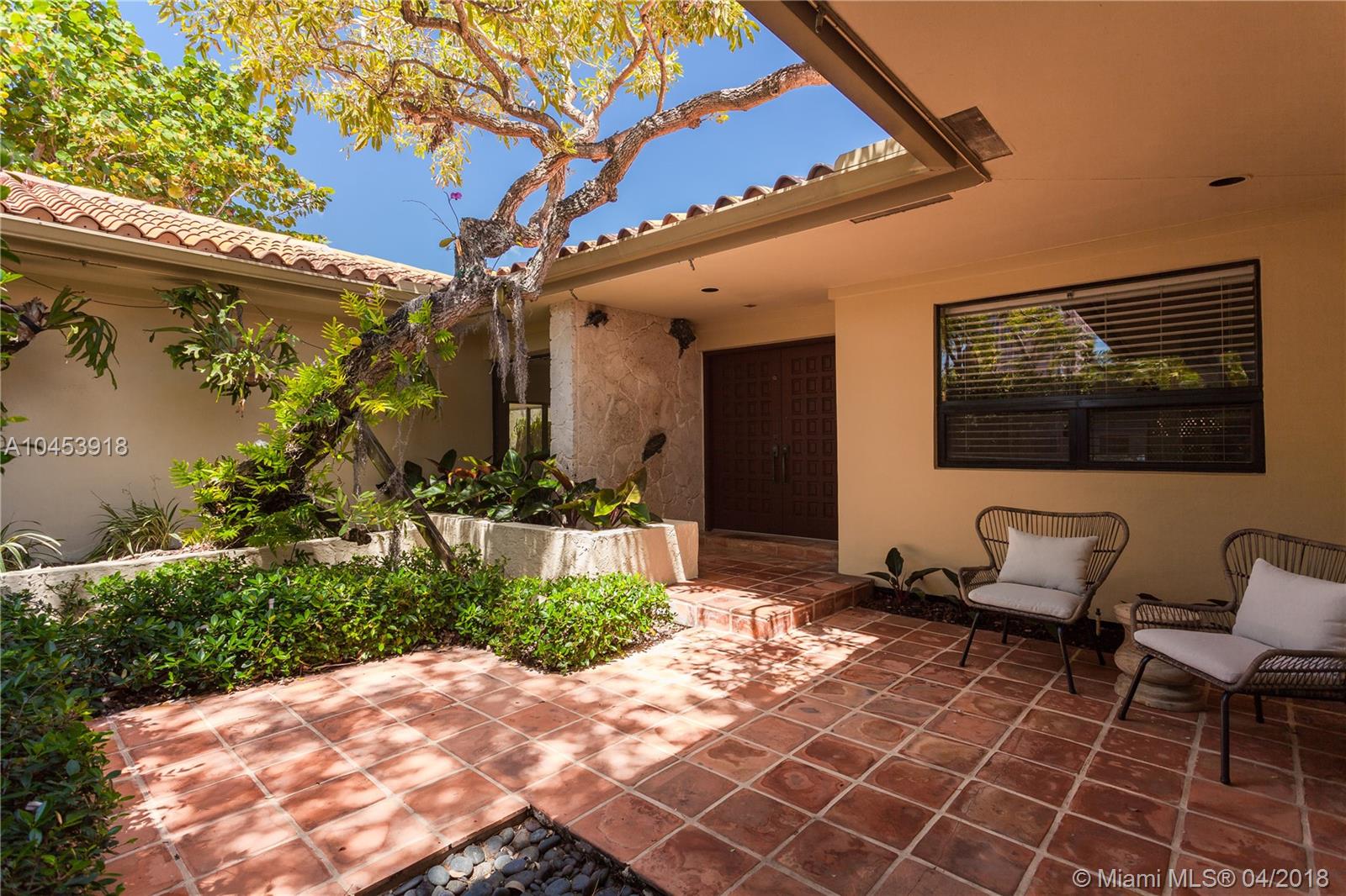 A prestigious and coveted South Gables neighborhood home with a large family room, formal dining and living as well as five bedrooms, four full bathrooms and guest half bath, plus an office complete with built-ins, provides plenty of space for everyone. Three private courtyards are perfect for quiet restorative moments while the pool and patio are ideal for social and family gatherings. Unique Coral rock wall in foyer, shining tile floors, cedar-lined master closets, built-in display system in family room and mosquito misting system. Located across the street from charming Sunrise Park. A Very Special Home.