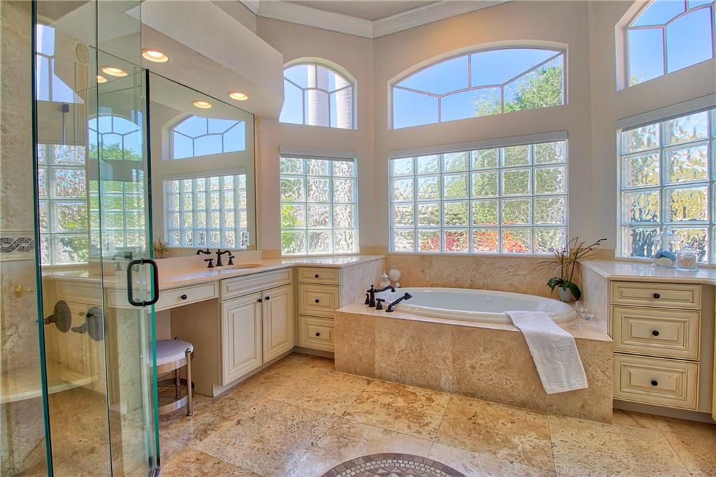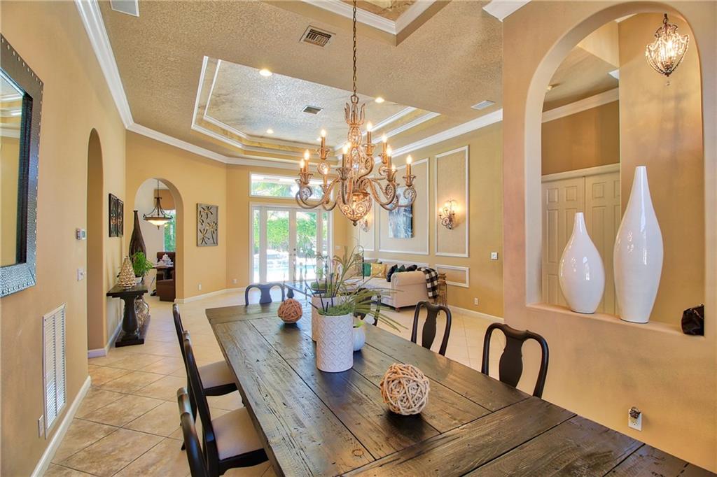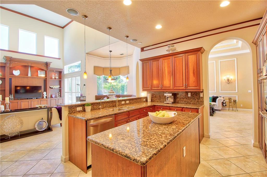Updated 5/4 pool home. 15k sqft lot 174' frontage. Garage fits long SUV. Volume ceilings w/ coffers & crwn upto 20' Chef’s kitchen w/Sub-Zero fridge,wine fridge & chill drwrs, wood cabs, dble Oven. Island & bar, pendant lights. 1st floor master suite wood flr, his & hers walk-ins. Updated marble bath, undermount sinks, jetted tub, heavy glass & rain head. Loft & 3 beds upstairs. 1 has in suite bath. 5th bed/office w/full cabana bath. Impact glass french doors, huge yard w/mature hedge, pool.