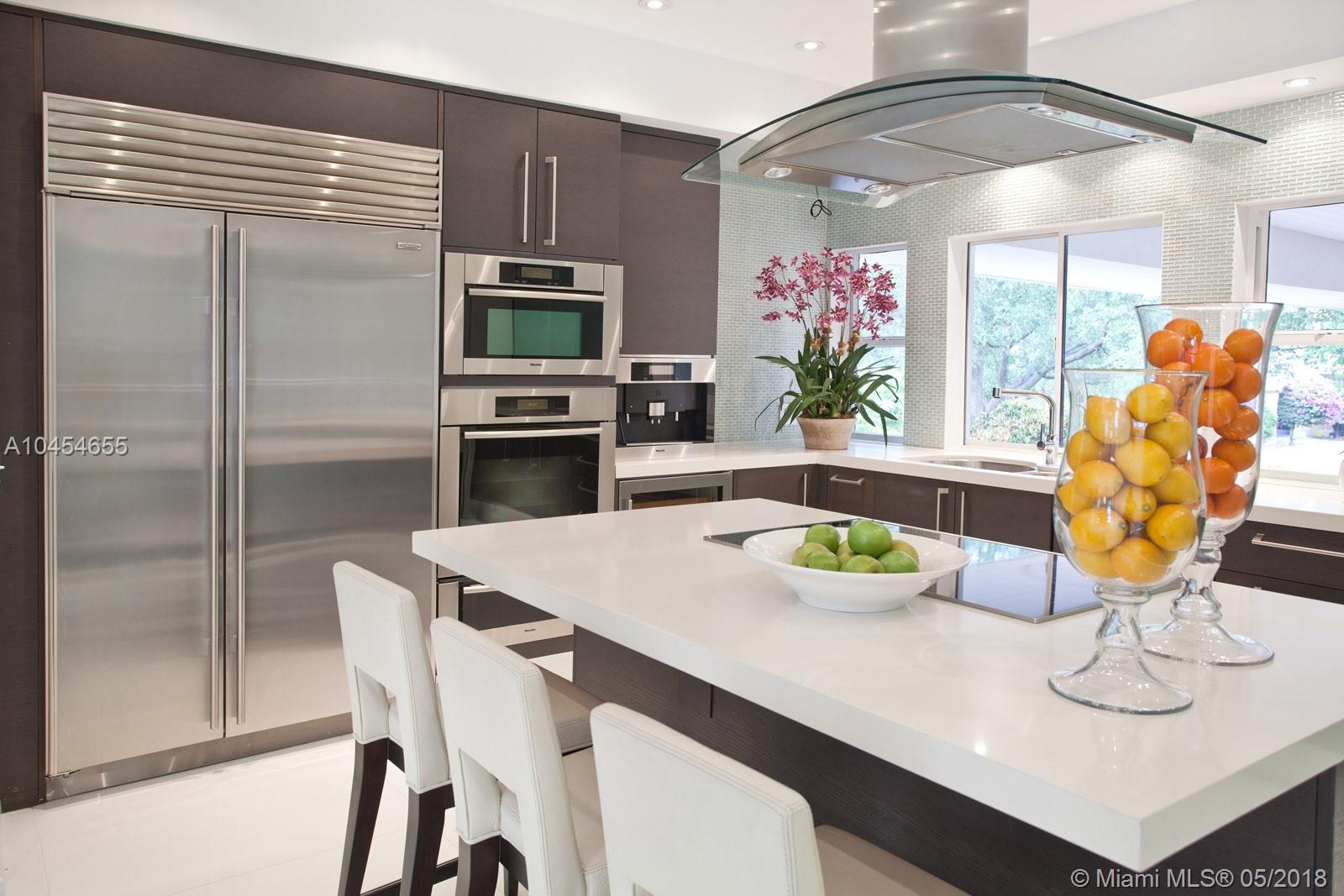 Contemporary two-story home extensively renovated in 2017-2018 with beautiful finishes. 36 x 36 white porcelanato floors, wood floors in bedrooms, modern kitchen and bathrooms. High ceilings in living room. The kitchen has Miele and Sub-Zero appliances and a walk-in pantry. First floor features: master bedroom with two huge walk-in closets and bathroom with dual sinks and separate tub and shower. Two more bedrooms with private bathrooms. Adjacent to the kitchen there is the maid's quarters. On second floor there are one bedroom, one bathroom and office. Beautiful pool and patio area with covered terrace. Two-car garage and porte cochere. The house also features full-house generator, hurricane shutters, and window film. Adj. Area as per owner.