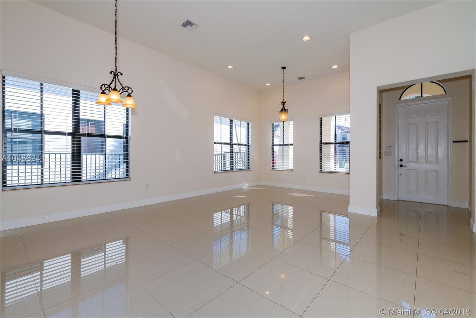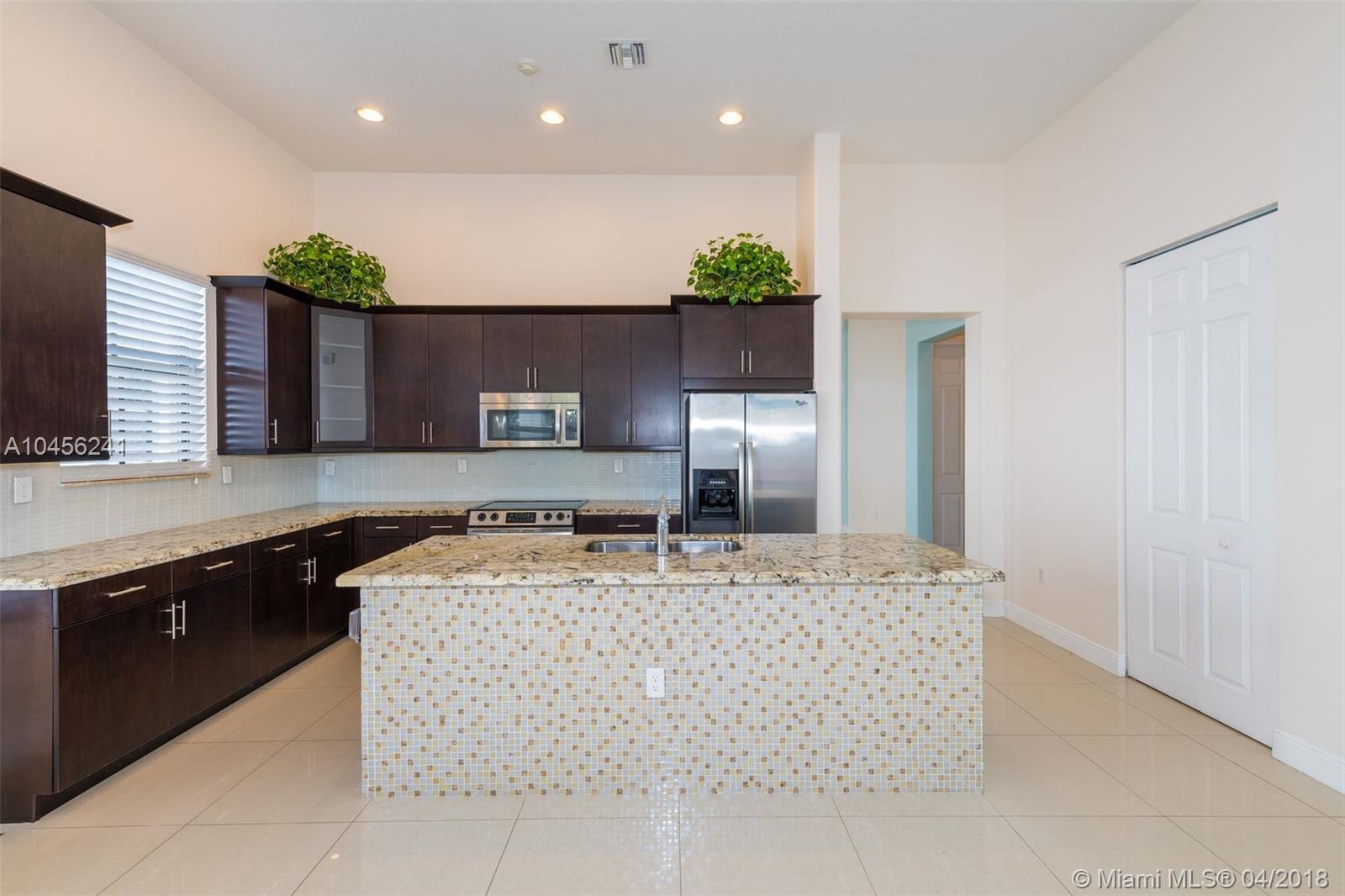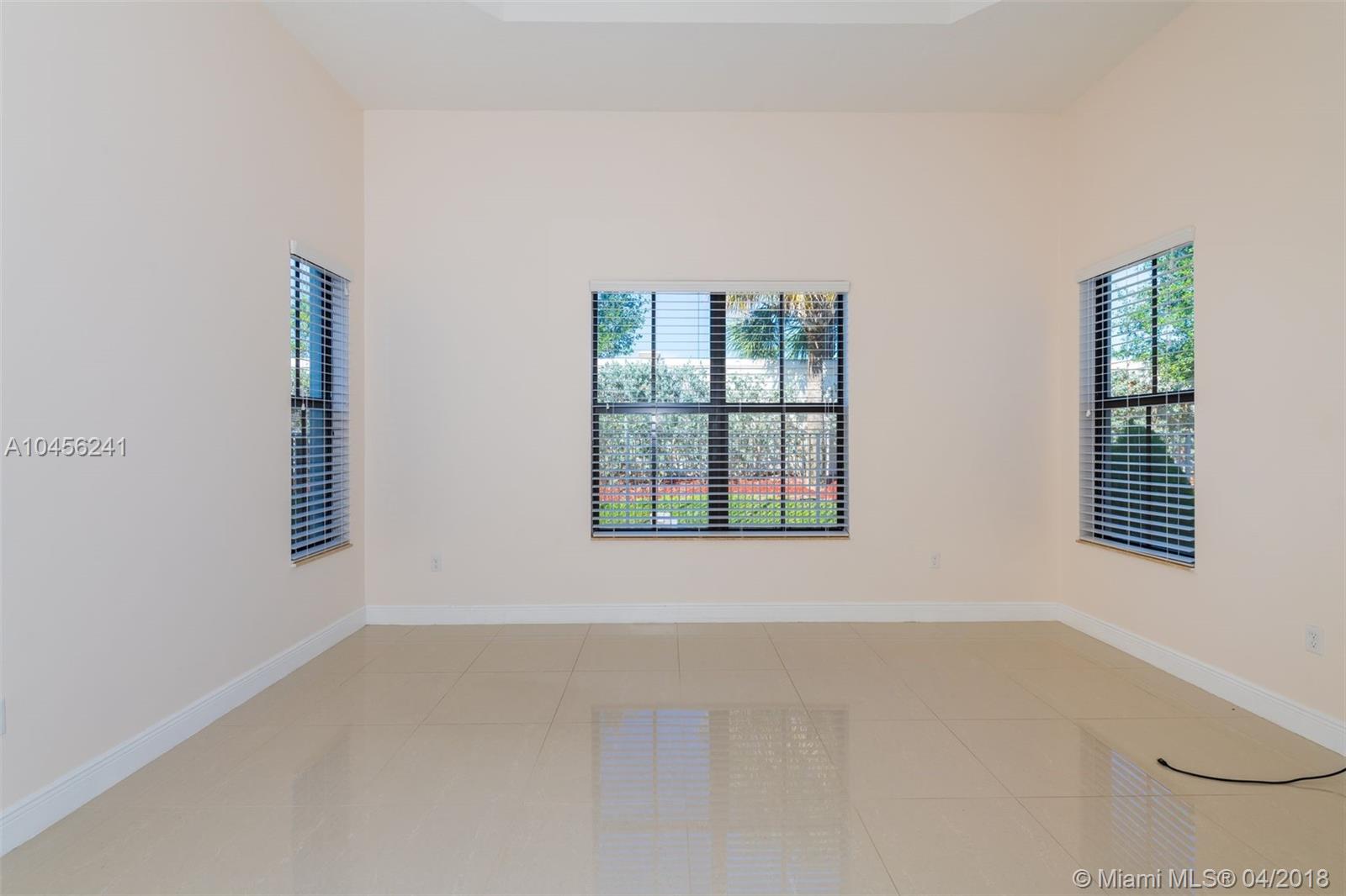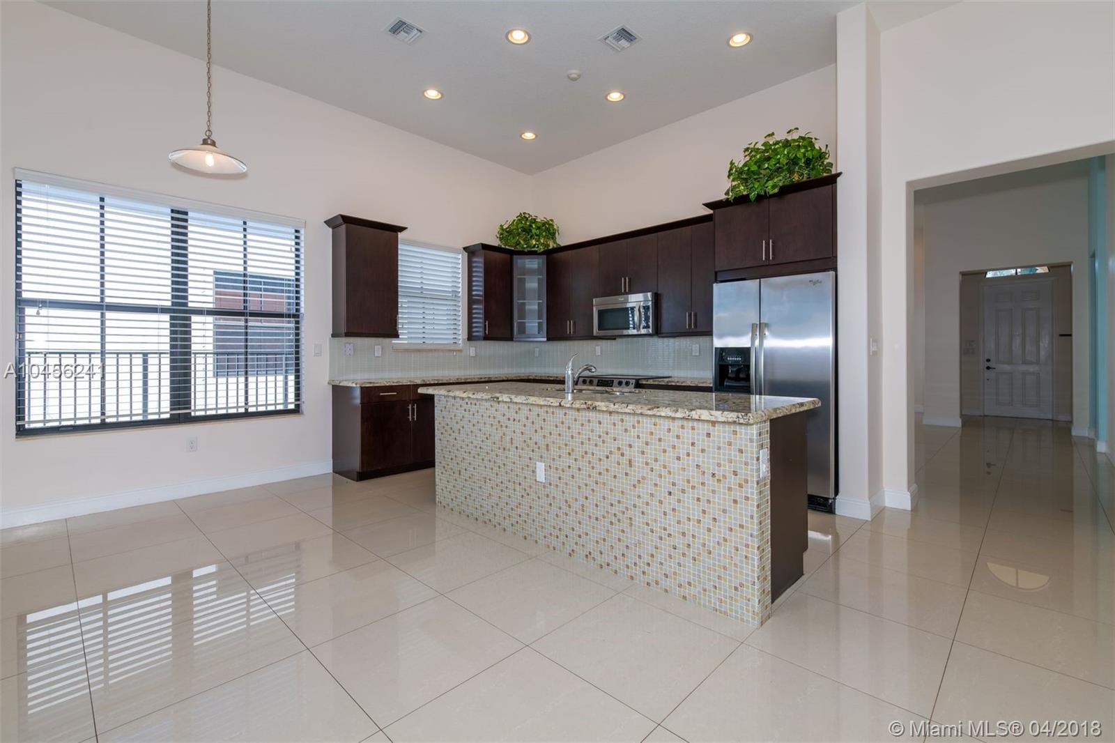 One story, 4 bedrooms, 3 baths home perfect for a family. Stunning finishes featuring porcelain tile flooring throughout the entire home, designer kitchen with granite counters and SS appliances and kitchen island. Kitchen opens to a great family room and has extended breakfast area. All windows and doors are impact glass. Huge master bedroom and bathroom with separate tub and shower. Built-in walking closets. Fenced yard with covered patio. Shows like a model, just bring your toothbrush. Secluded gated community with resort like amenities and security. Rated A Schools and proximity to highways, shopping and all you need around Cooper City.