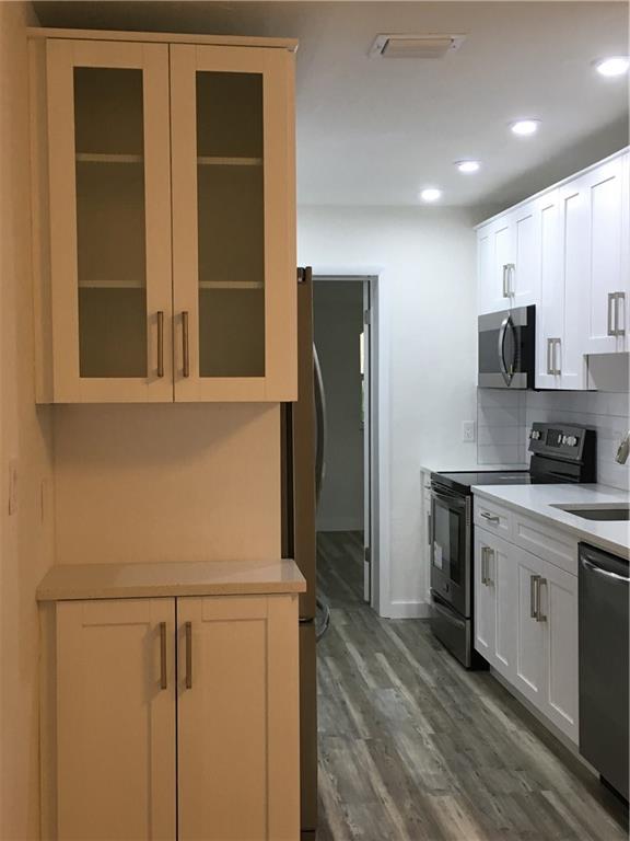 Single family home completely updated by a master carpenter. This lovely home offers 3 bed rooms and one and one half Bath rooms and laundry located in the office/craft room. Brand new solid wood shaker cabinets, Quartz counter top with plenty of space for a true cook's needs as well as all new Stainless steel Frigidaire Gallery Refrigerator, Range, Dishwasher and Microwave, new electrical circuit system, All new impact windows and doors!!! new bathrooms, vinyl-wood look flooring: easy to clean, water proof, soft steps for the tired backs and easy on baby's knees. newer AC, fresh paint through out: exterior and interior. large newly sodded yard with sprinkler system. Plenty of storage inside and out. It's a must see!