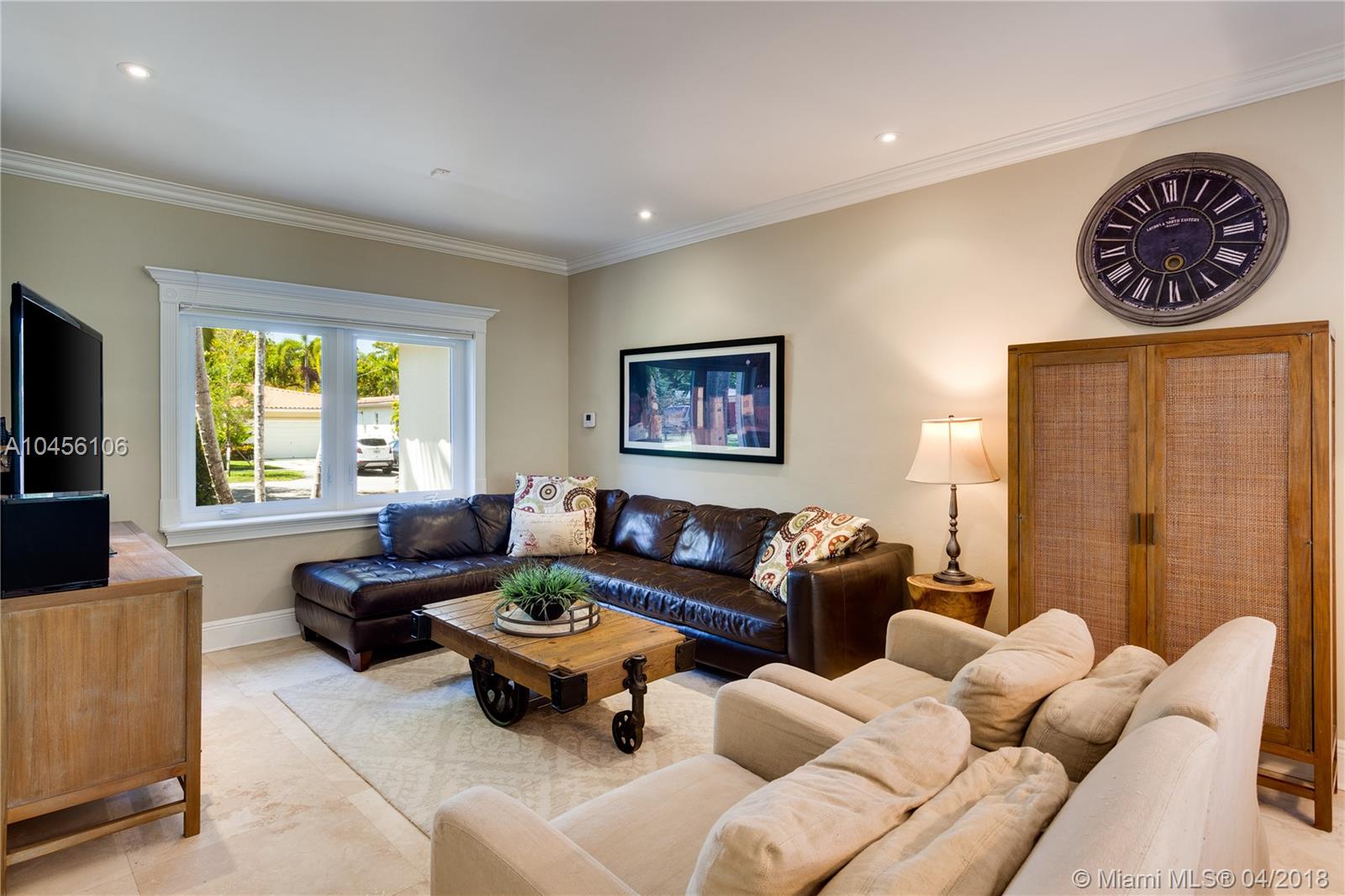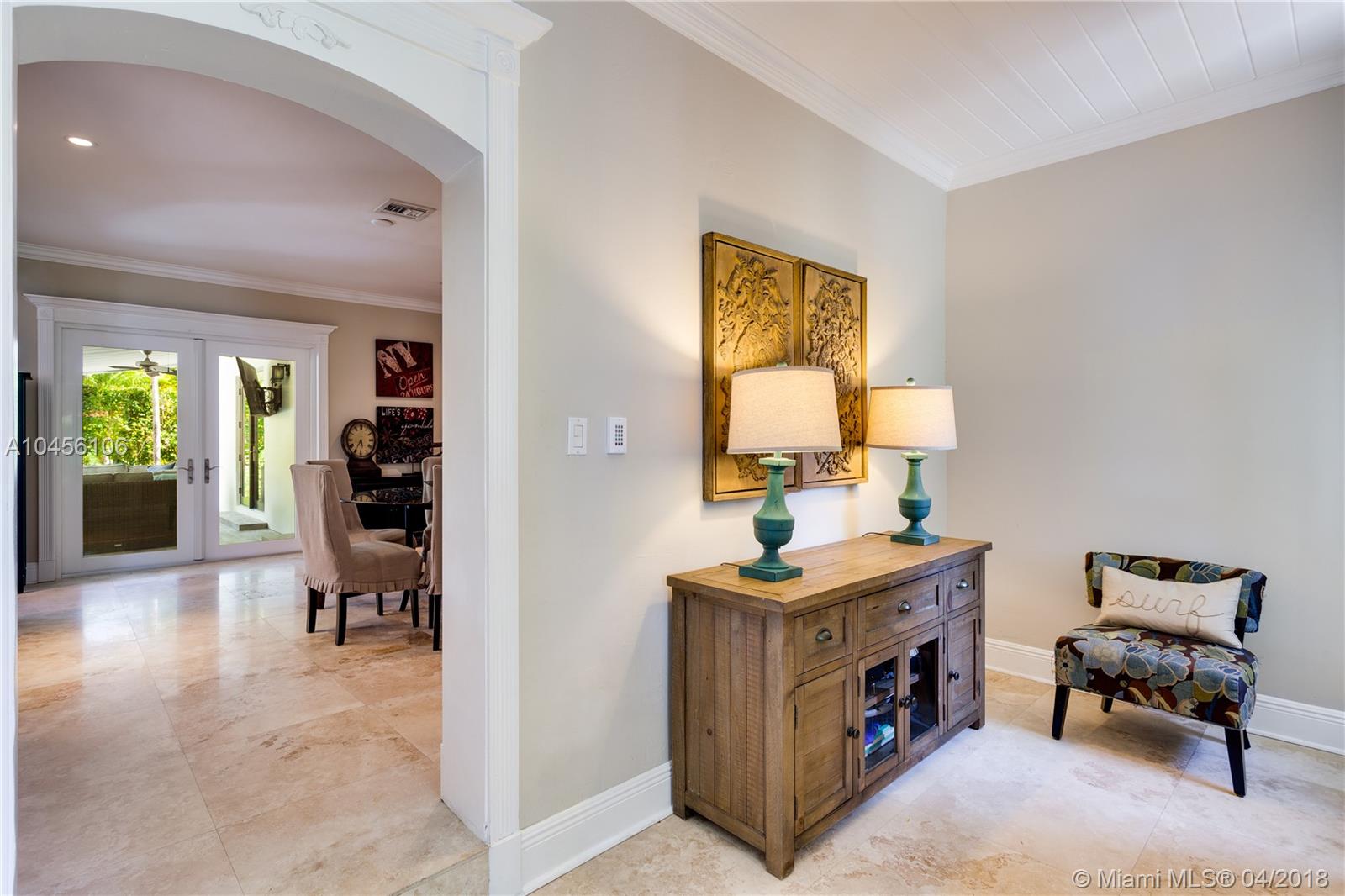 A one-story home in the highly sought after Coral Gables neighborhood known as the Platinum Triangle is now available. Shall we start with the curb appeal? This home has it. This 4 bedroom, 3 bath beauty delights in its architectural details, starting with the charming foyer that announces you have arrived and continues into the enchanting living and dining room with its intricate moldings and finishes. An updated kitchen and breakfast bar overlook the heated pool and covered veranda that act as an outdoor living room. Updated bathrooms are fresh and contemporary, and the master suite includes an office niche as well as a walk-in closet. A Very Special Home.
