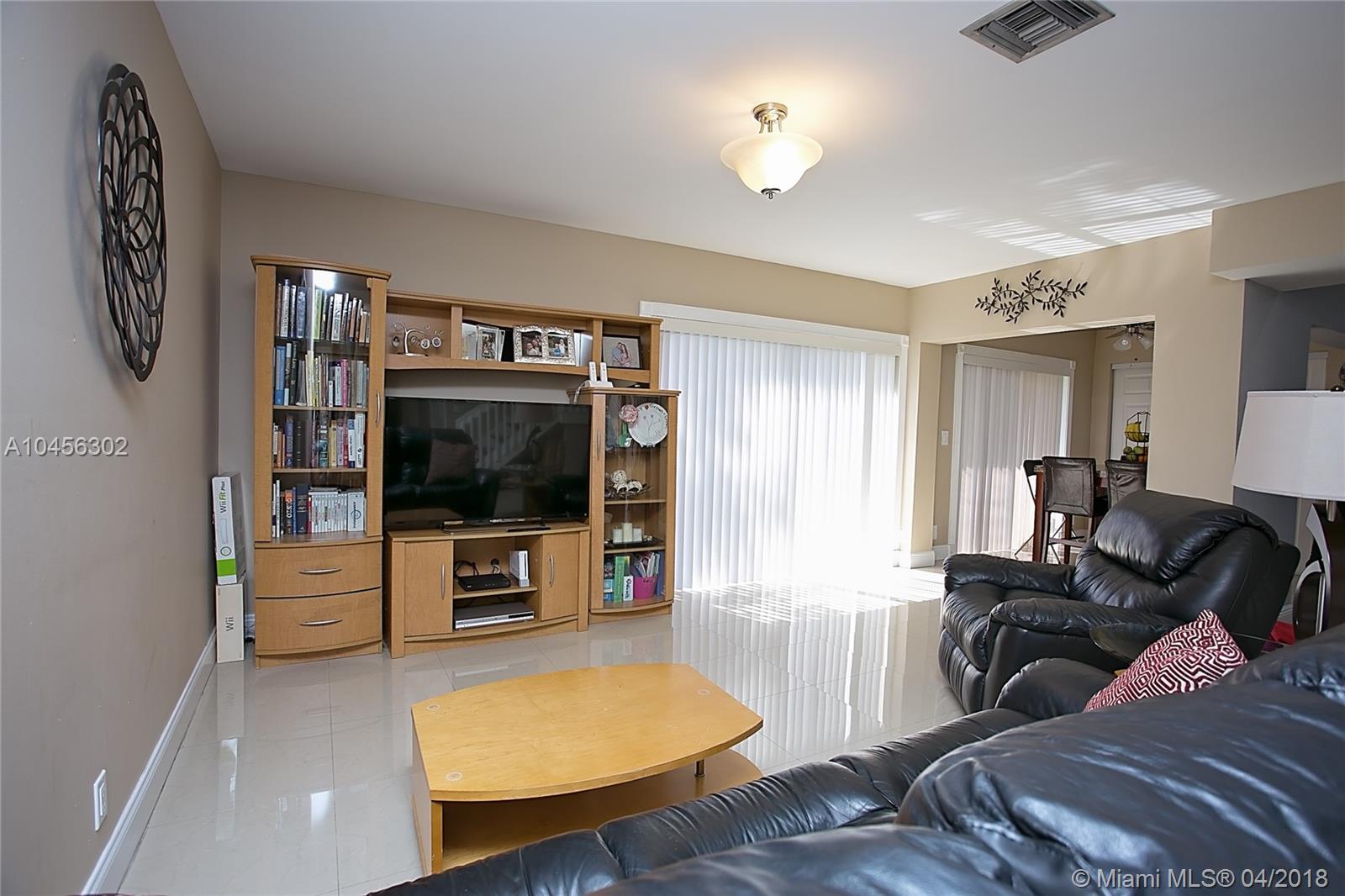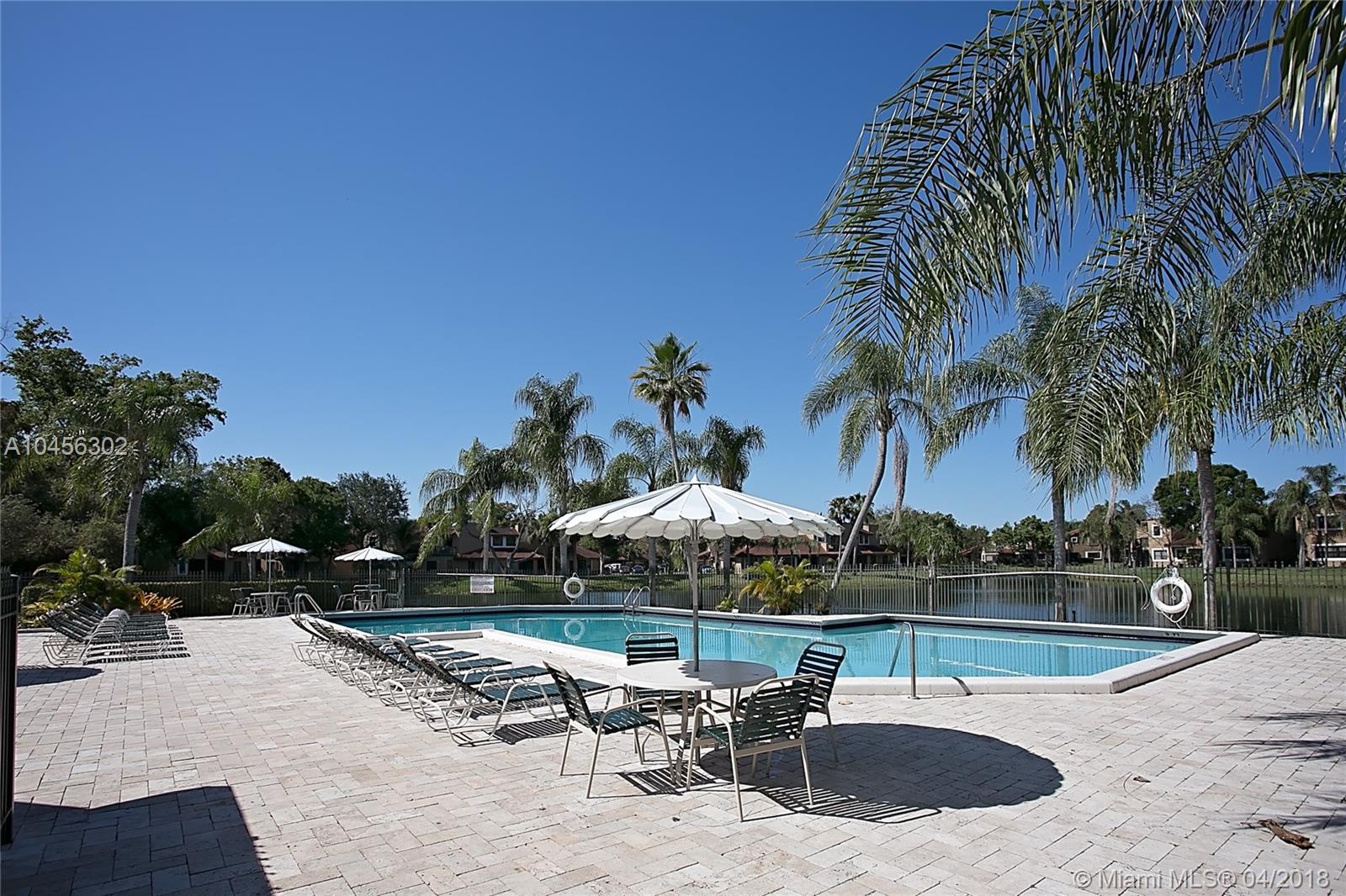 This tastefully updated 3 bedroom 3 bathroom townhouse has a private setting with no neighbors behind. Patio is enclosed and currently used as dining area. Remodeled kitchen (2013) with additional cabinets and trendy tiled backsplash. Spacious great room accommodates living area and dining room. Spacious master bedroom has room for a sitting area. Large neutral tile downstairs (2015) and wood floors upstairs. All bathrooms have updated (2013) cabinets and fixtures and downstairs bathroom completely retiled. One bedroom and one bathroom on entry level. Lots of closets through out for extra storage. A/C installed in 2016. Accordion shutters. Maintenance includes building exterior and roof repairs. Gated community. Amenities include pool and children's play area.