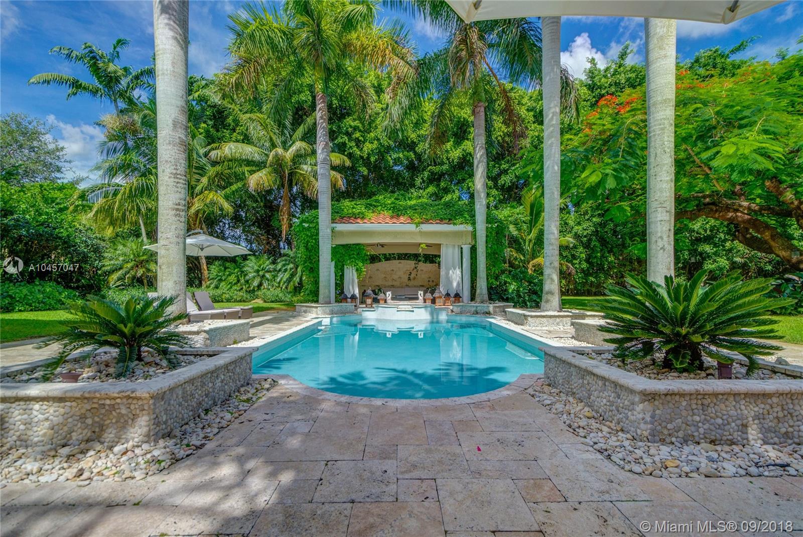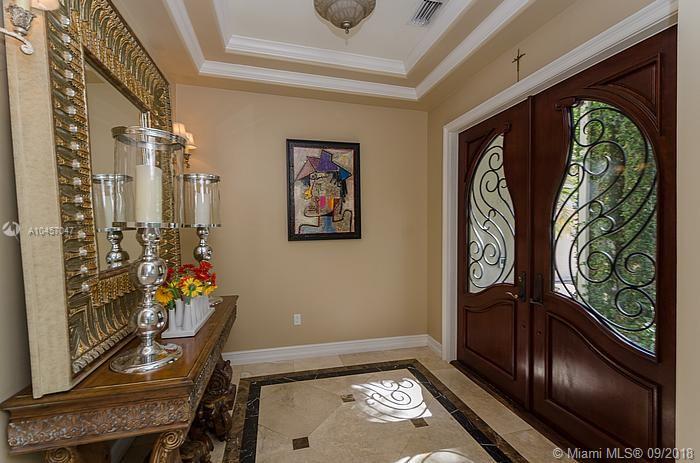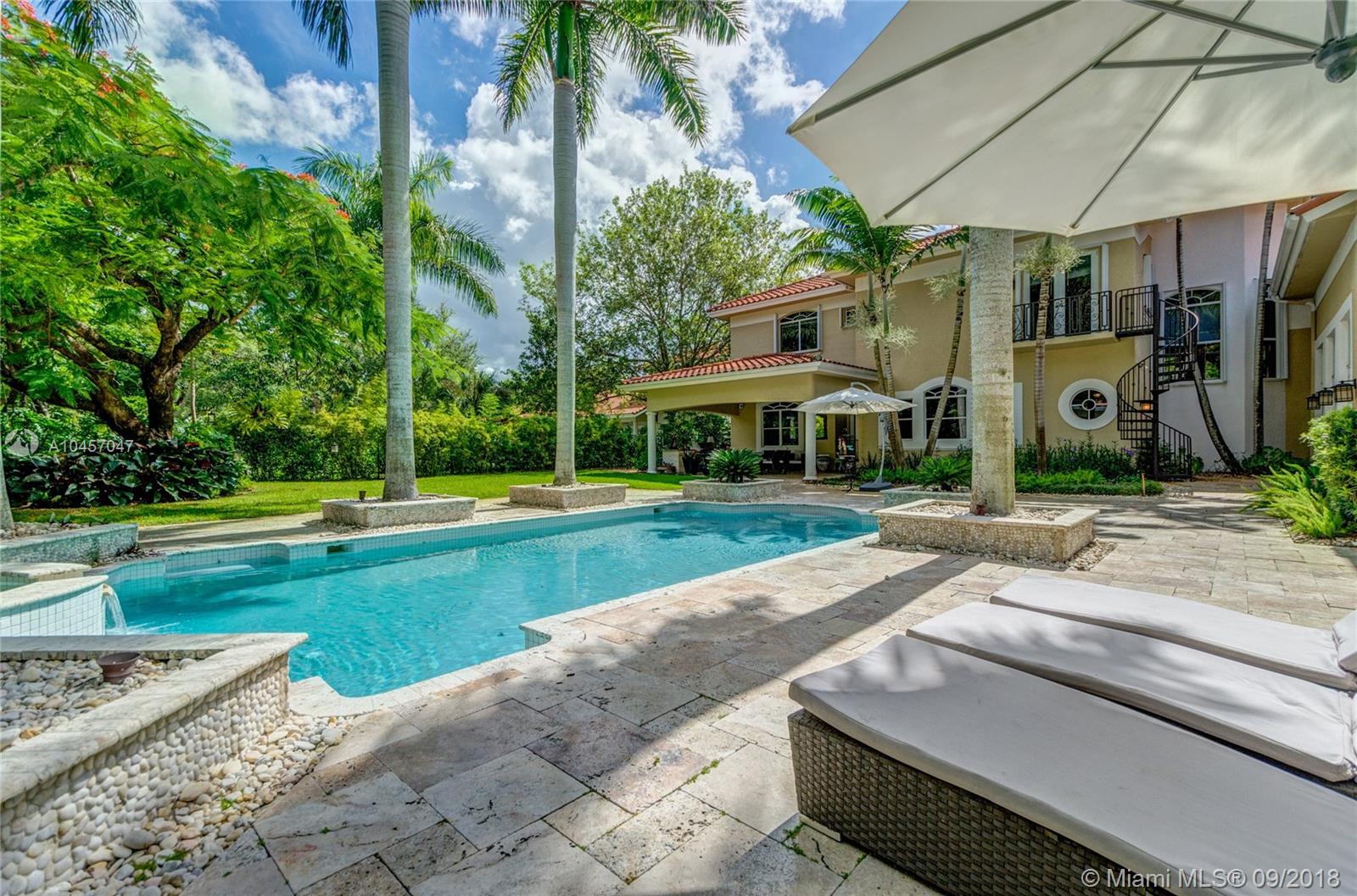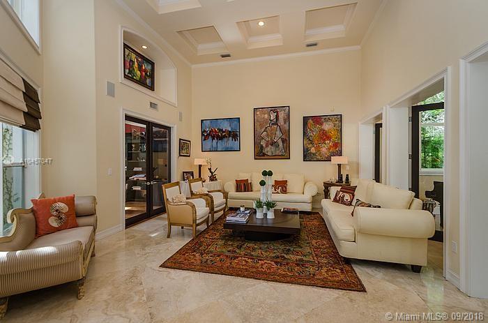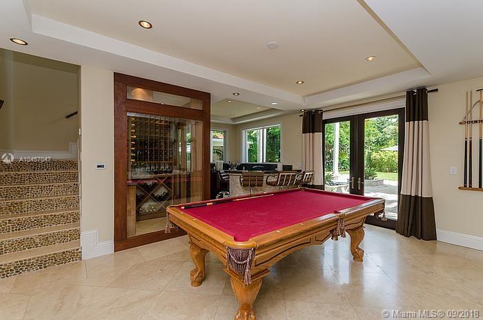 Beautiful 2 story Euro-Traditional style estate located in quiet, gated Pinecrest enclave of 5 homes! Expansive open floor plan with volume ceilings and French doors throughout. All luxurious appointments and amenities. Gorgeous living and formal dining rooms. Amazing recreation/family room with wine cellar, full bar. Home theater, office, gym. Surround system. Brand new 2017 modern kitchen. Separate maids room. Lavish master suite. Marble and wood floors. Stunning and lush grounds. Inviting open pool. Summer kitchen. A must see!!