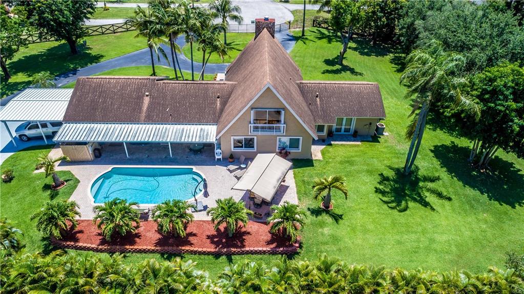 Charming Northern Ranch-style Home in Sought-after Ivanhoe Estates!This home's unique architecture combined w/picturesque views, beautiful stone accented walls & interior craftsmanship,T/G wood vaulted ceiling&wood floors brings the warmth&serenity of nature.Custom kitchen w/roll-out drawers,S/S appls &cozy dining area.Impact glass. Detached Garage (Rec area/office under A/C+workshop) ideal for GH. On Cul-de-sac w/private elect gate entry. Immaculately landscaped grounds w/mature trees. Saltwater pool.