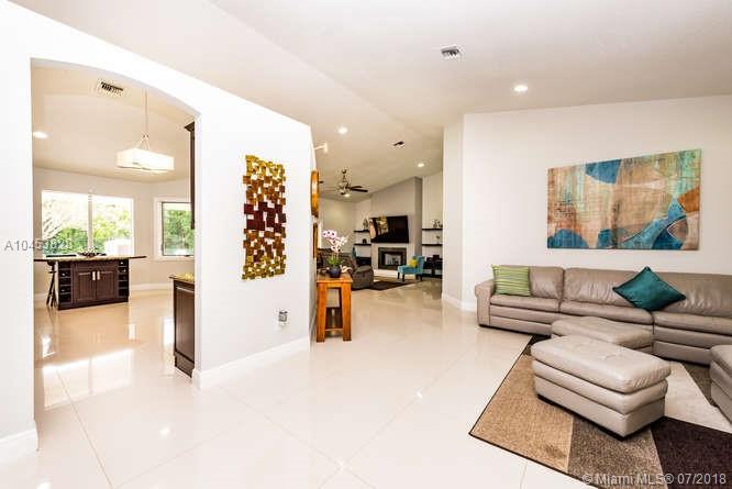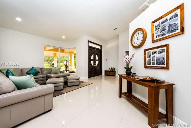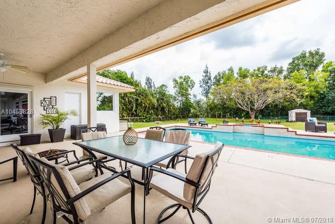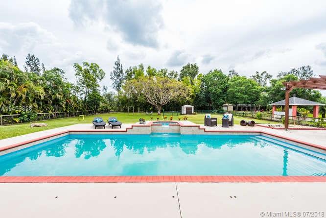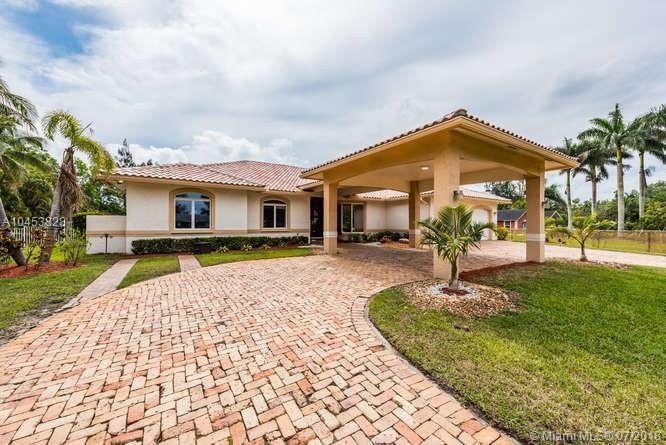 Generous spaces, Right what you need! This single family home features four Beds and 3.5 baths with an additional den/office-now with a state of the art built in library. 2 attached car garage on an acre of land in the heart of Southwest Ranches. Wooden floors in all the Bedrooms and ceramic floors throughout the unit. One-year-old Rheem AC unit. Impact glass in the front window by the entrance/in the office and hurricane panels for the rest of the house. This familiar floor plan is family ready! Perfectly clean, well maintained house ready to move in. The pool has been re-surfaced. Kitchen with Granite counter tops & high-end stainless steel appliances and wooden cabinets, Wood Chimney. Quiet and peaceful neighborhood with all the A+ schools and easy access to all highways!
