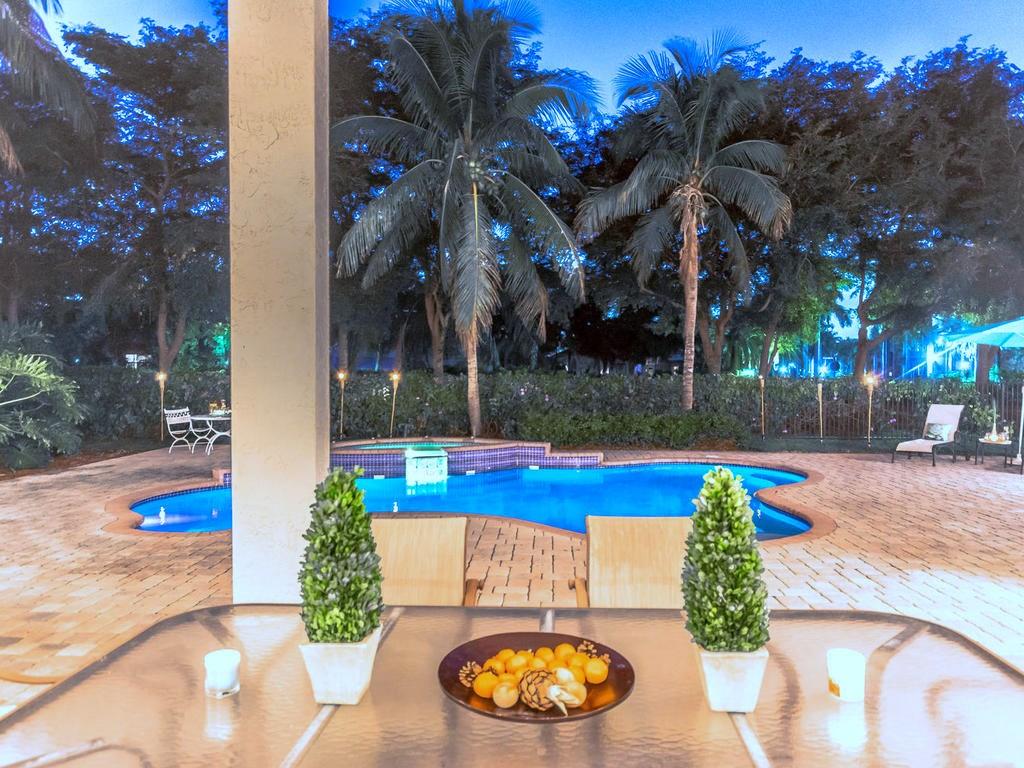 STUNNING 5/4.5/3CG SINGLE STORY WESTON HILLS RESIDENCE W/WALLS OF GLASS THAT REFLECT THE SPARKLING HEATED POOL/SPA & TROPICALLY LANDSCAPED FULLY FENCED .35 ACRE GARDEN! SATURNIA MARBLE FLRS, CROWN MOLDING, HIGH COFFERED CEILINGS, LIBRARY W/SOLID WOOD CABINETRY, WET BAR, GRANITE/WOOD KITCHEN W/CENTER ISLAND. LUXURIOUS MASTER SUITE W/SITTING AREA, MARBLE MASTER BATH. FABULOUS GUEST SUITE W/STUDIO & CABANA BATH. PLANTATION SHUTTERS, CENTRAL VAC, 2016 DIAMOND BRITE, NEW W/D, ACCORDIONS, CIRC DRIVE, A+SCHOOLS!