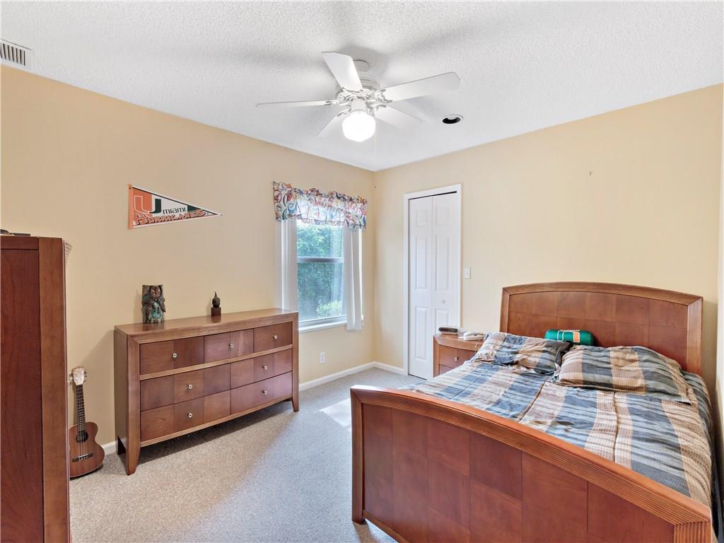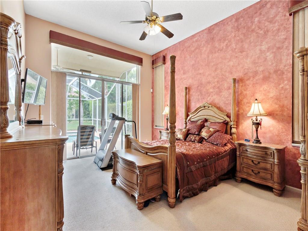 Light & bright 5 bedroom, 4 bath beauty on private cul-de-sac in the gated golf course community of Eagle Trace. Spectacular home in move-in condition, Travertine flooring, neutral colors throughout. Stunning Plantation shutters. Kitchen w/pantry, granite & stainless. Mechanical systems & roof in good condition.Tons of storage and a rare 4-car garage! Volume ceilings & Hi-Hats everywhere! Gorgeous screened pool with spa and huge backyard. Great home for entertaining and raising children.