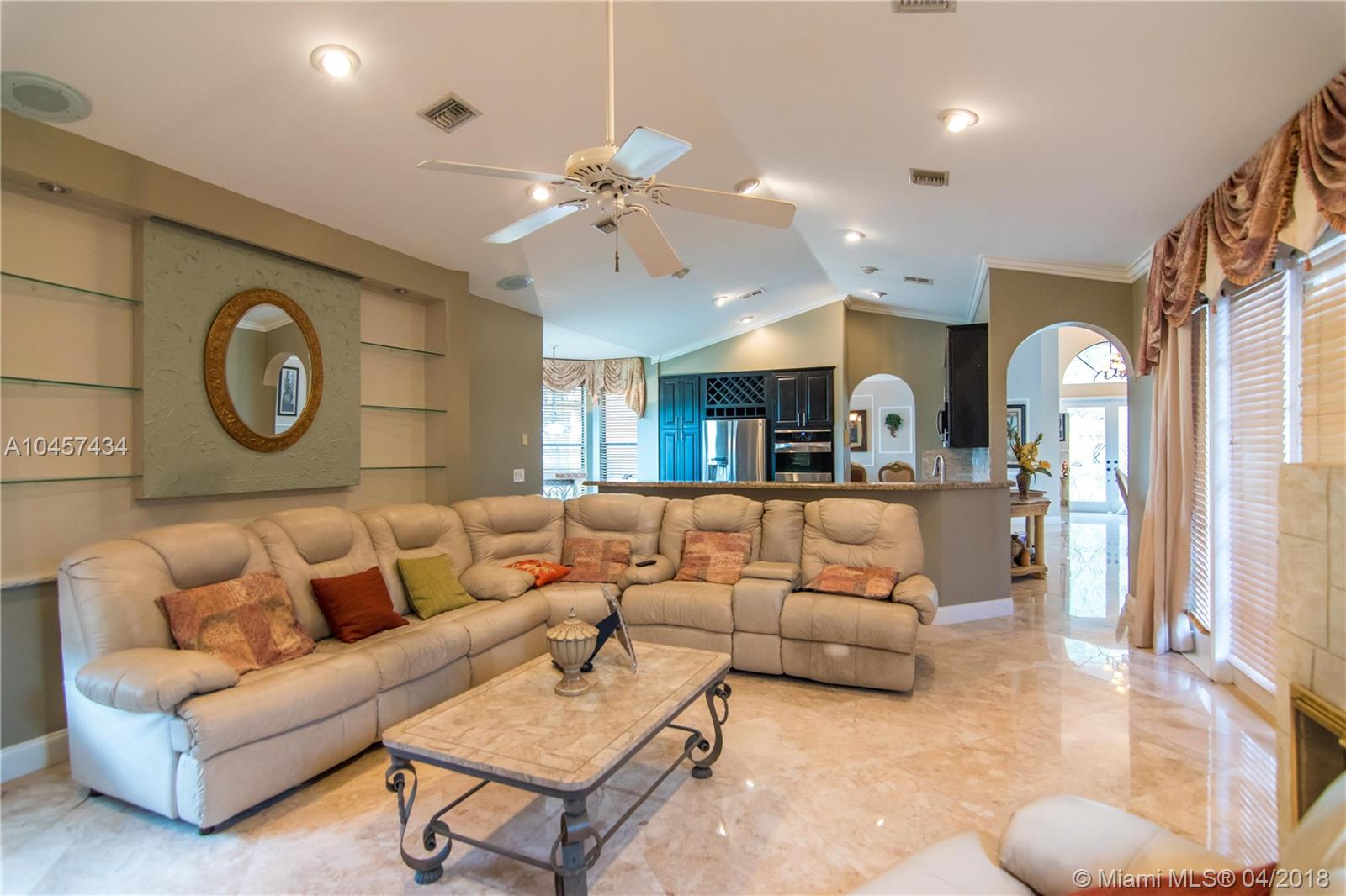 BEAUTIFUL & SPACIOUS 3,347 SQUARE FOOT 4 BR 2 full BATH & 2 HALF BATH ON A 14,187 SQUARE FOOT QUIET CUL-DE-SAC LOT IN THE PRESTIGIOUS GOLF GATED COMMUNITY OF EAGLE TRACE. 24/24 CREMA OF MARFIL MARBLE FLOORS, BAMBOO WOOD FLOOR IN 3 OF THE BR; 24/24 CREMA OF MARFIL MARBLE IN MASTER SUITE WITH MADALION CENTER PIECE. NEW MODERN KITCHEN WITH CENTER ISLAND WITH GRANITE COUNTERS, NEW APPLIANCES, DOUBLE WALL OVEN AND BEAUTIFUL COOK TOP WITH WINE COOLER. DUAL VANITIES IN ALL BATH ROOMS, WALKING CLOSETS IN ALL BR AND HIS AND HERS WALKING CLOSET IN MASTER SUITES WITH SITTING AREA. VAULTED CEILING IN FOYER AND THROUGHOUT LIVING RM, FORMAL DINING RM AND LARGE FAMILY RM. FRESHLY PAINTED IN AND OUT, 3 CENTRAL AC UNITS, BEAUTIFUL SPANISH S TILE WAS REPLACED AFTER HURRICANE WILMA, STUNNING POOL W WATERFALL