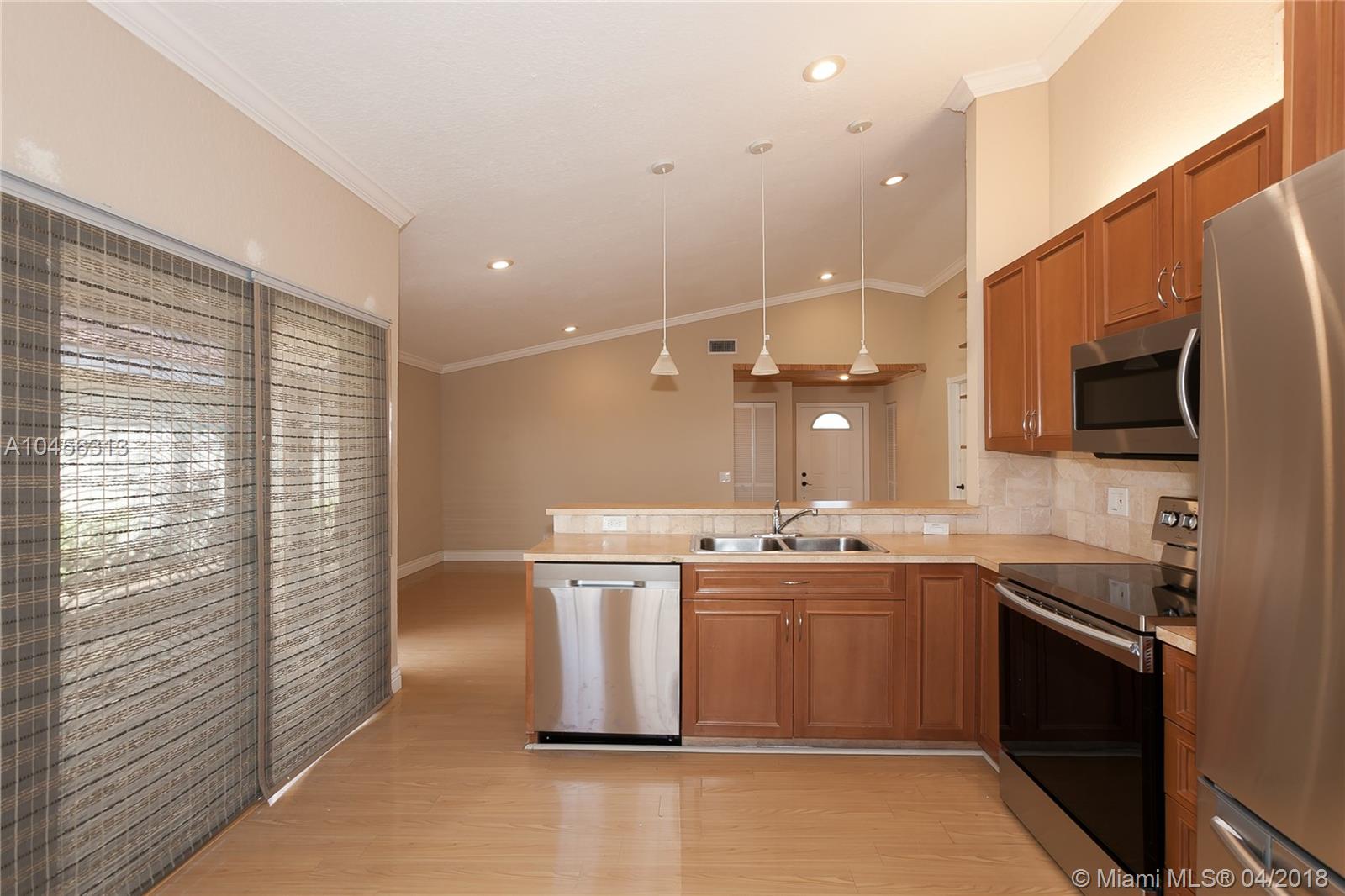 This cozy one story 2 bedroom home with 1 car garage is nestled in a private cul-de sac in the charming neighborhood of the Garden Homes. Interior boasts updated eat-in kitchen with wood cabinets, brand new stainless steel appliances and tumbled marble backsplash, tastefully updated bathrooms, wood flooring, and textured vaulted ceilings with crown molding. Roof is 7 years old. A/C and water heater installed in 2012. Exterior has private covered patio with wood decking which overlooks a fenced yard. Steps to community pool, Town Center and shopping.