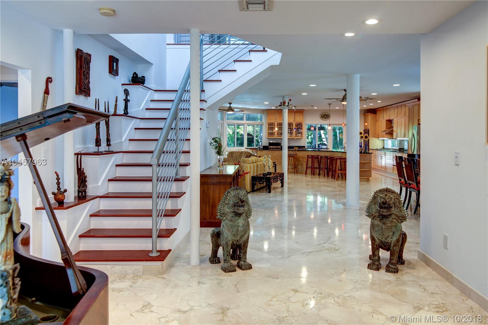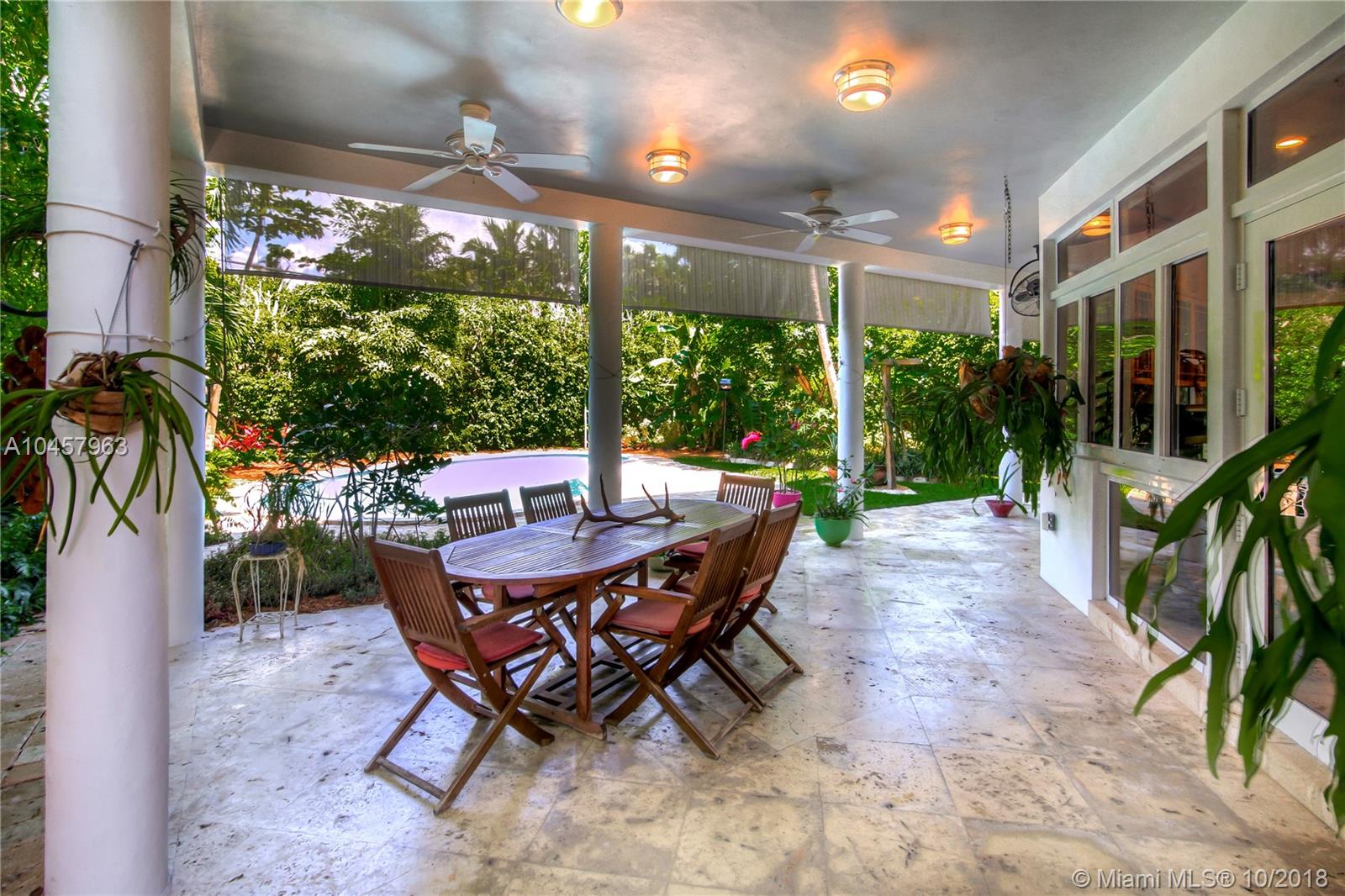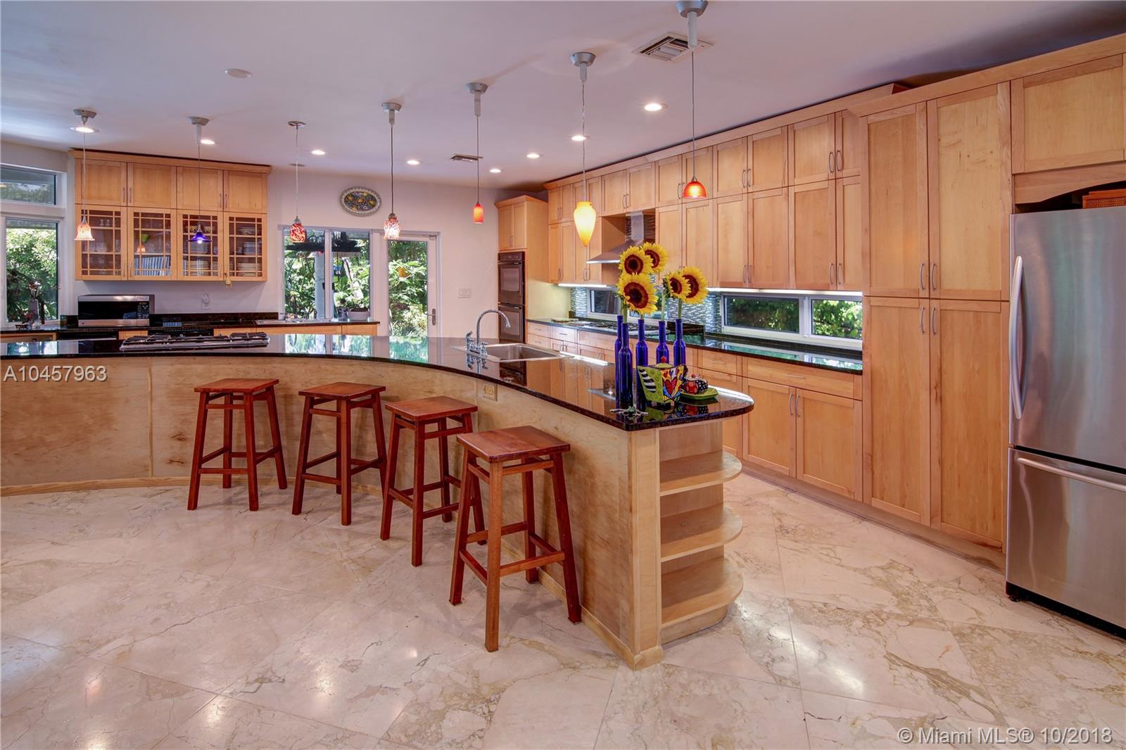 Spectacular renovated residence on a sumptuous, lushly landscaped lot. Grand living & dining areas flow into gourmet kitchen featuring: maple kitchen cabinets, granite countertops, 22 ft cooking island, SS appliances, double cook tops, ovens & sinks. Separate wet bar/kosher area. Gleaming laminate wood floors. Beautiful updated baths. Opulent Master Suite w/ 13 ft vaulted ceilings & terraces overlooking serene pool & garden. Impact windows/doors. House holds a historic preservation designation. House was beautifully redone in 2005.