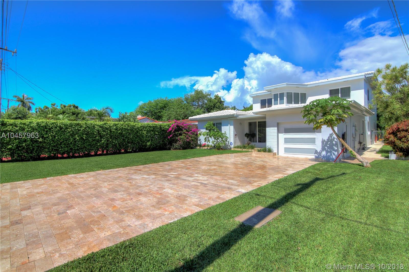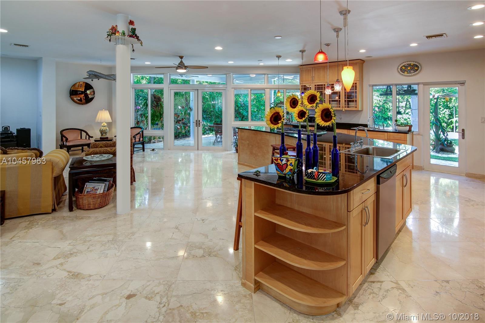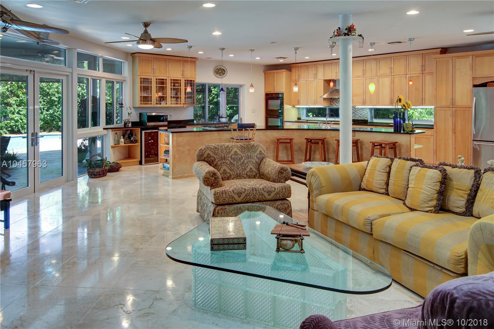 Spectacular renovated residence on a sumptuous, lushly landscaped lot. Grand living & dining areas flow into gourmet kitchen featuring: maple kitchen cabinets, granite countertops, 22 ft cooking island, SS appliances, double cook tops, ovens & sinks. Separate wet bar/kosher area. Gleaming laminate wood floors. Beautiful updated baths. Opulent Master Suite w/ 13 ft vaulted ceilings & terraces overlooking serene pool & garden. Impact windows/doors. House holds a historic preservation designation. House was beautifully redone in 2005.