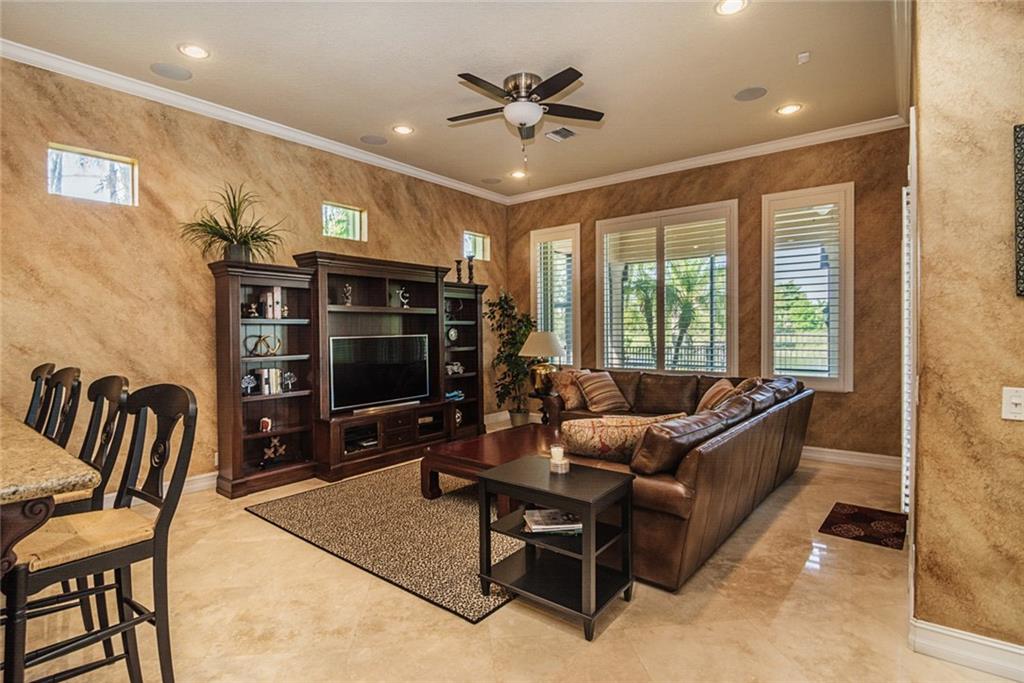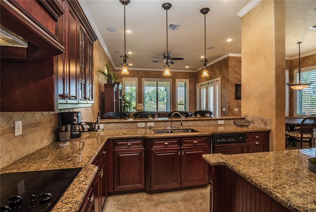 Breathtaking 6/5 Estate Home with 3-car Garage, a large pool w/ built-in spa, golf course views, lake views, and an oversized Lanai just tailor-made for entertaining! This stunning home boasts a large living room w/soaring ceilings, a formal dining room, a den/office, a family room, a gourmet island kitchen with granite counters, 42" cherry-wood cabinetry, a breakfast bar that seats 6, a cozy breakfast nook, crown molding, and marble floors. Bring your most discerning buyers, they won't be disappointed!