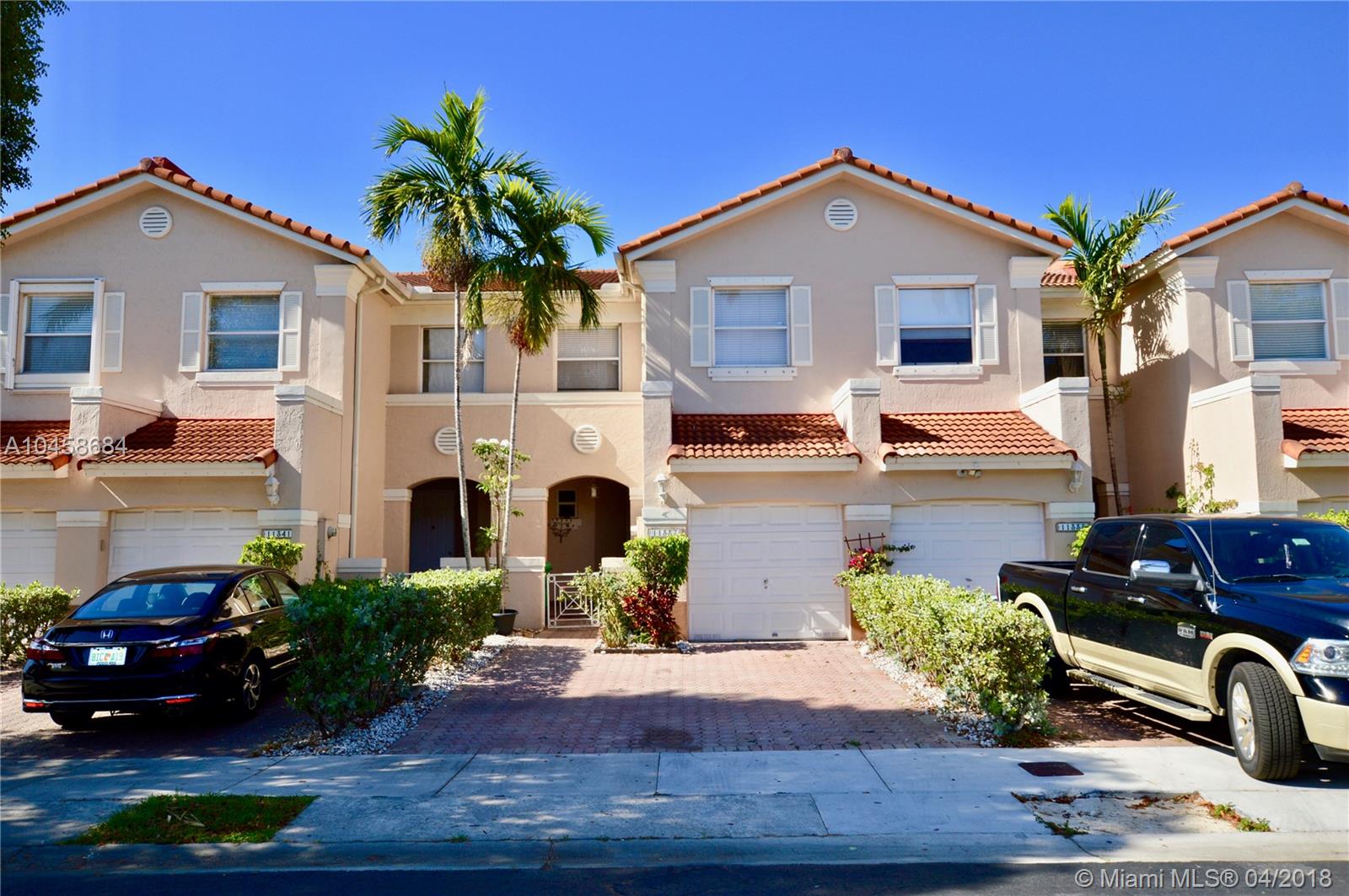 Spacious 3/2.5 Townhome, centrally located in Doral. Easy access to Miami International Mall, Dolphin Mall, wonderful Restaurants, all major expressways, Miami International Airport and much more!!! Low maintenance community only $180.00 per month. Beautiful community pool and clubhouse with additional parking. This is a must see property. This property has been placed in an upcoming online event, all offers are welcome up to 72 hours prior to the event period to the website on the Broker Remarks. Event dates TBD. All properties are subject to a 5% buyer’s premium. Please Contact the listing agent for details.