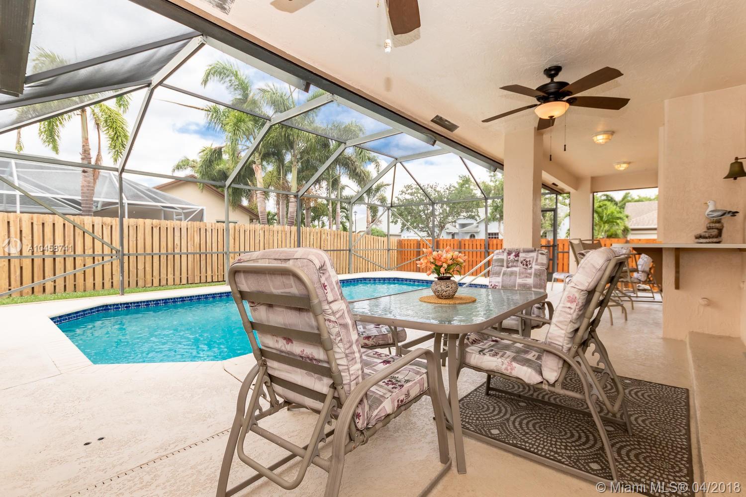Meticulously kept inside and out 3 bed/ 2 bath pool home on a beautifully landscaped fenced in corner lot. Located in highly desirable New River Estates. Home features a Formal Dining, Living Room, Family room, Breakfast area and interior laundry room. Kitchen features a pass thru window to patio. Oversize master bedroom includes a 6x8 walk in closet. Tiled thru-out family room and kitchen. Newly installed laminate flooring in all bedrooms, living and dining room. Sliding tinted glass doors in family room and master bedroom lead out to relaxing screened in pool area. Home is located near major highways 595/ I-75 and Sawgrass Expressway. Home is located close to Weston, Cleveland Clinic, restaurants, shopping, parks and more. Zoned for Davie schools. This home will not last!