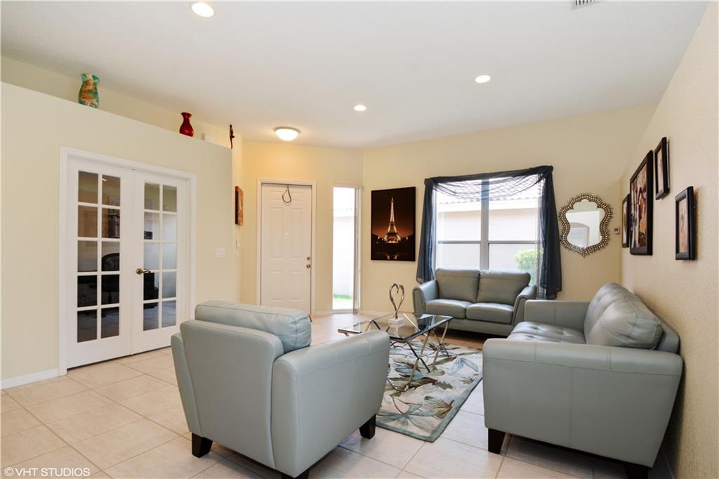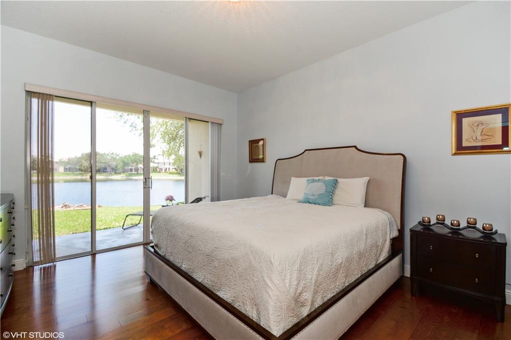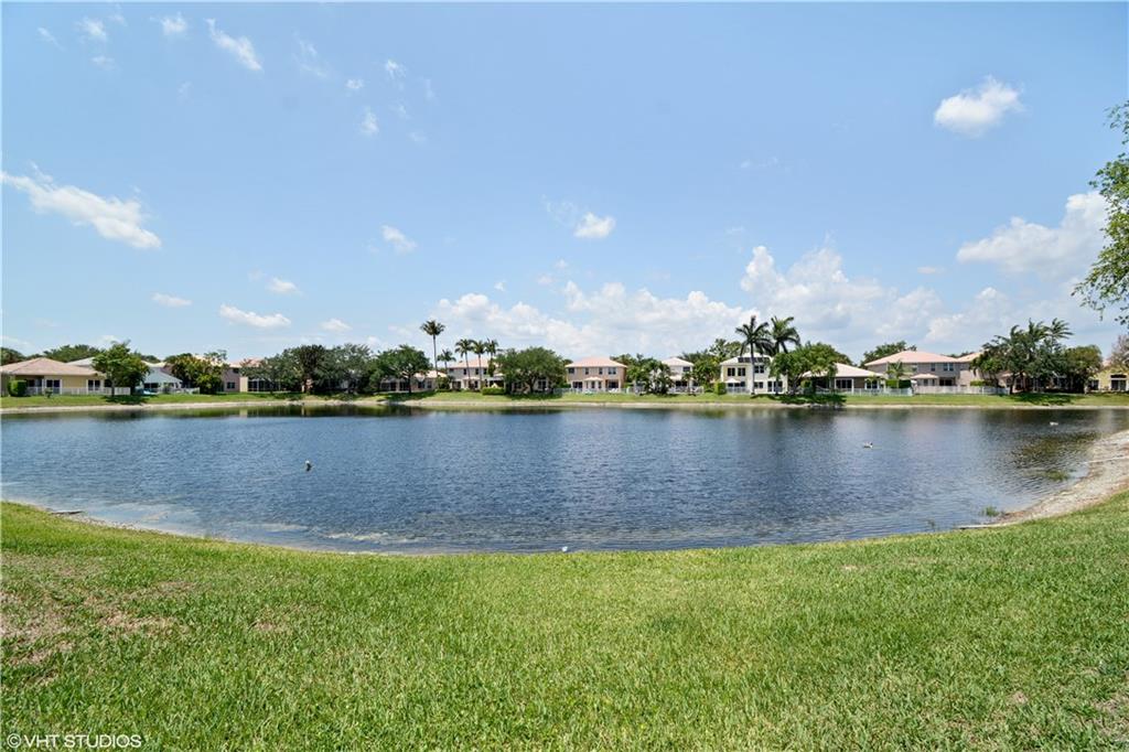 Beautiful wide lake views await you in this immaculate and upgraded home. Breathe in the serenity! The white gourmet kitchen with granite counter tops is a cook's delight. Beautiful flooring throughout. No carpet. French doors, plenty of closets and an open, spacious floor plan with a split bedroom plan. Luxurious master bath. Light and bright. Storm shutters. Lovely patio for relaxing with lake views. Manicured, gated community. Fourth bedroom being used as an office. Ideal location, shopping and dining.