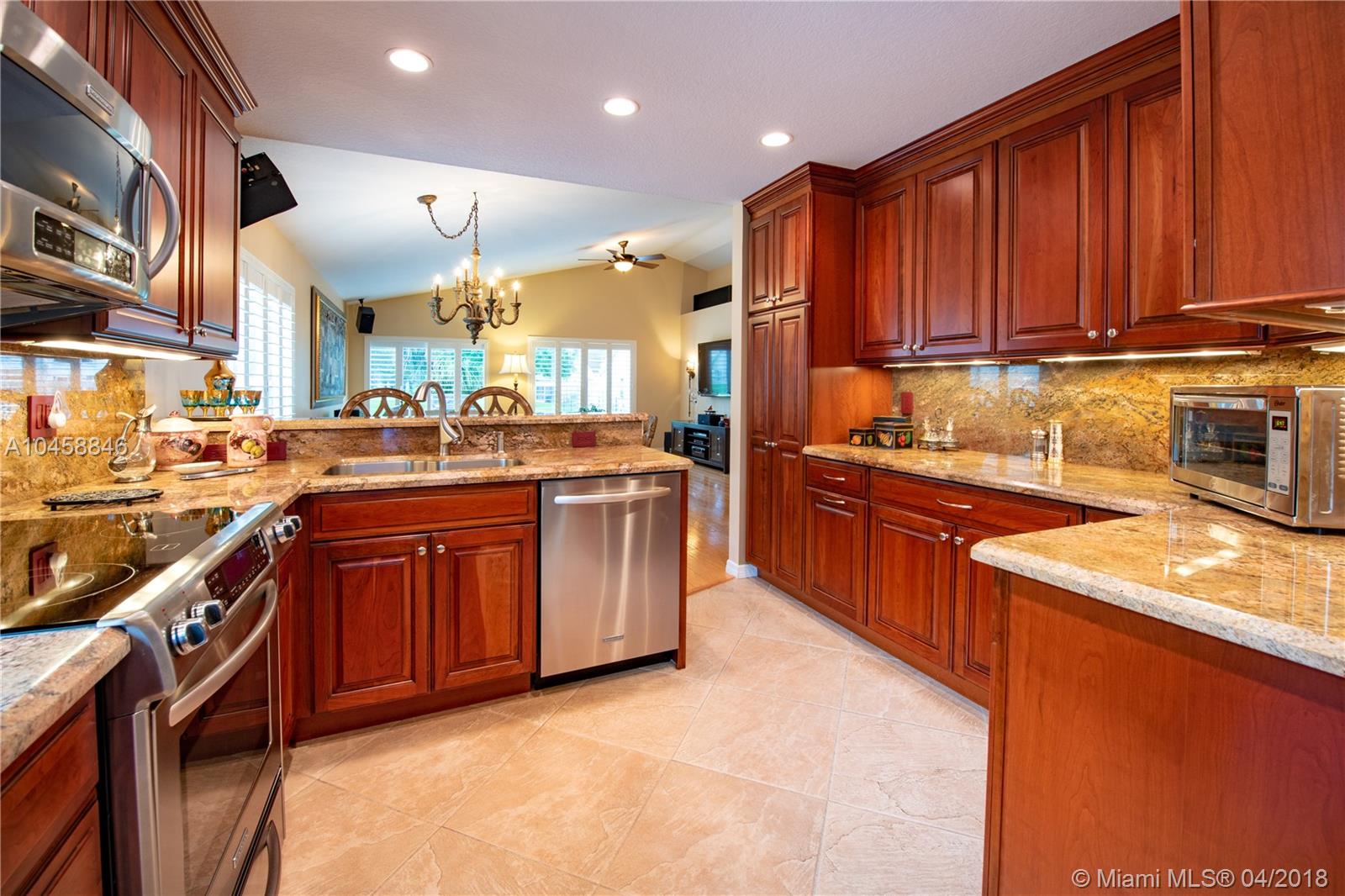 This home has it ALL! Totally remodeled 3 bedroom 2 bath home in Forest Ridge in Davie! This premium lot has long views of grass/trees/open space to the lake! Recessed lighting throughout, knock down ceilings, custom baseboards, bathrooms remodeled with custom vanities/countertops, Kohler sink & toilets, Kitchen has custom Cherry Wood cabinets with crown molding, Frankie sink & Grohe faucet, Kitchen Aid Stainless steel appliances, granite countertops, backsplash & window sills, Hardwood flooring in living areas, marble floors in bedrooms. 3rd bedroom has French doors; house painted 2016, Ruud A/C 2013, Front Door/Garage Door 2018; hurricane panels for entire house! 80 Gallon water heater, garage vented with A/C, 2"Intellicore insulation, Roof 1996. Community pool/tennis/basketball.