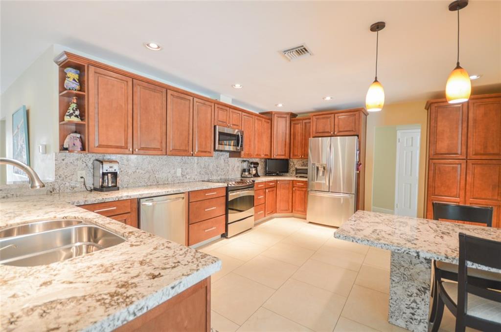 STUNNING 4/3.5 ON DOUBLE LOT WITH EXTRA LAND ON THE SIDE OF THE HOME FOR A BOAT/RV. LARGE OPEN FLOOR PLAN WITH 24X24 PORCELAIN FLOORS IN THE LIVING & KITCHEN AREAS, & WOOD FLOORING IN THE BEDROOMS. WONDERFUL OPEN KITCHEN THAT OFFERS GRANITE COUNTERS, S/S APPLIANCES, AND CHERRY WOOD CABINETS WITH PULL OUTS. ALL IMPACT GLASS WINDOWS AND DOORS THROUGHOUT. SMOOTH CEILINGS WITH LED RECESSED LIGHTING.LARGE 4-5 CAR DRIVEWAY. AMAZING COVERED PATIO SCREENED IN FOR ENTERTAINING IN. 20X40 POOL WITH HEATED SPA.